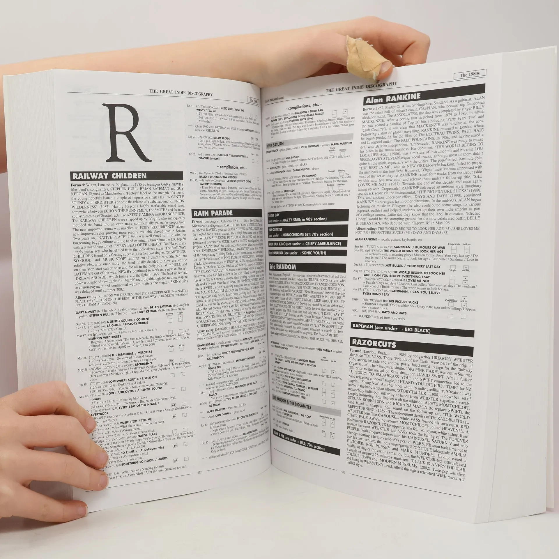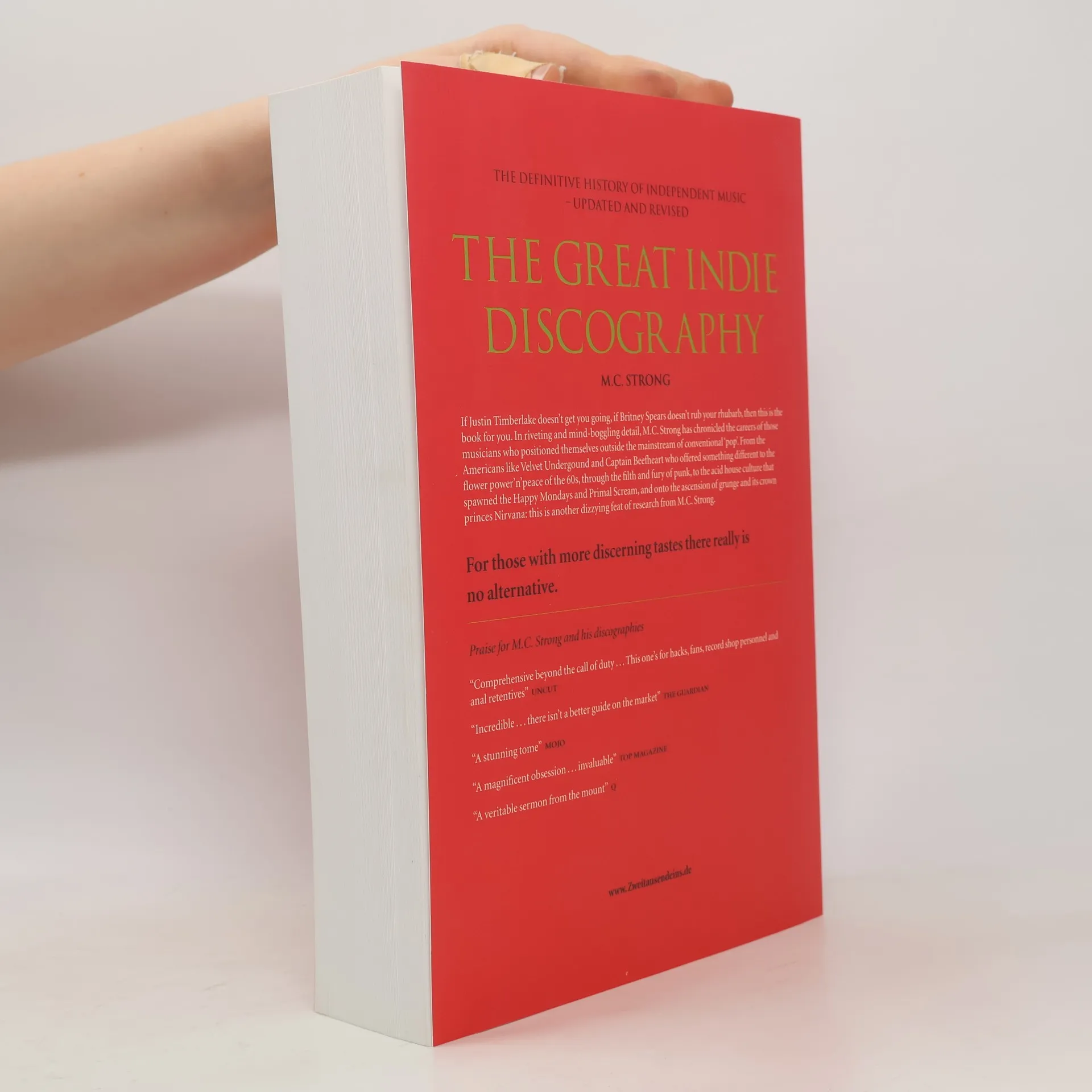 Die Große Independent Rock Diskografie. Aktuelle Ausgabe 2003. Was dem Richter sein BGB ist, dem Hotelnachttisch seine Bibel, dem Polizisten sein Punktekatalog, das sind Martin C. Strongs Diskografien für jeden, der berufsmäßig oder interessehalber mit Rockmusik zu tun hat: unverzichtbares, absolut zuverlässiges Wissen, der finale Ratgeber in allen Fragen des Rock. Strongs „Great Alternative & Indie Discography“ ist die Chronik der anderen, der Karrieren meist abseits der Hitparaden. Von den LSD-beträufelten Velvet Underground bis zum Acid-House der Happy Mondays oder Primal Scream. Der große (Din A4), dicke (1.088 Seiten) und orangerote Band von Strong ist „umfassend über alle Maßen“ (Uncut), er zeugt von einer „herrlichen Besessenheit“ (Top Magazin), er ist „die beste detaillierte Geschichte der alternativen Musik“ (Preview). Über 20 Jahre lang hat Strong an diesem Werk gearbeitet. Über 2.000 Gruppen mit der Geschichte der Band, diskografischen Angaben und Vorschlägen zum Weiterhören. „Unbezahlbar“ (Times). Aktuelle Ausgabe 2003. Text Englisch. In Deutschland nur bei uns. Statt 29 EUR (e. P.) in England bei uns nur 19,95 EUR. Nummer 18484.