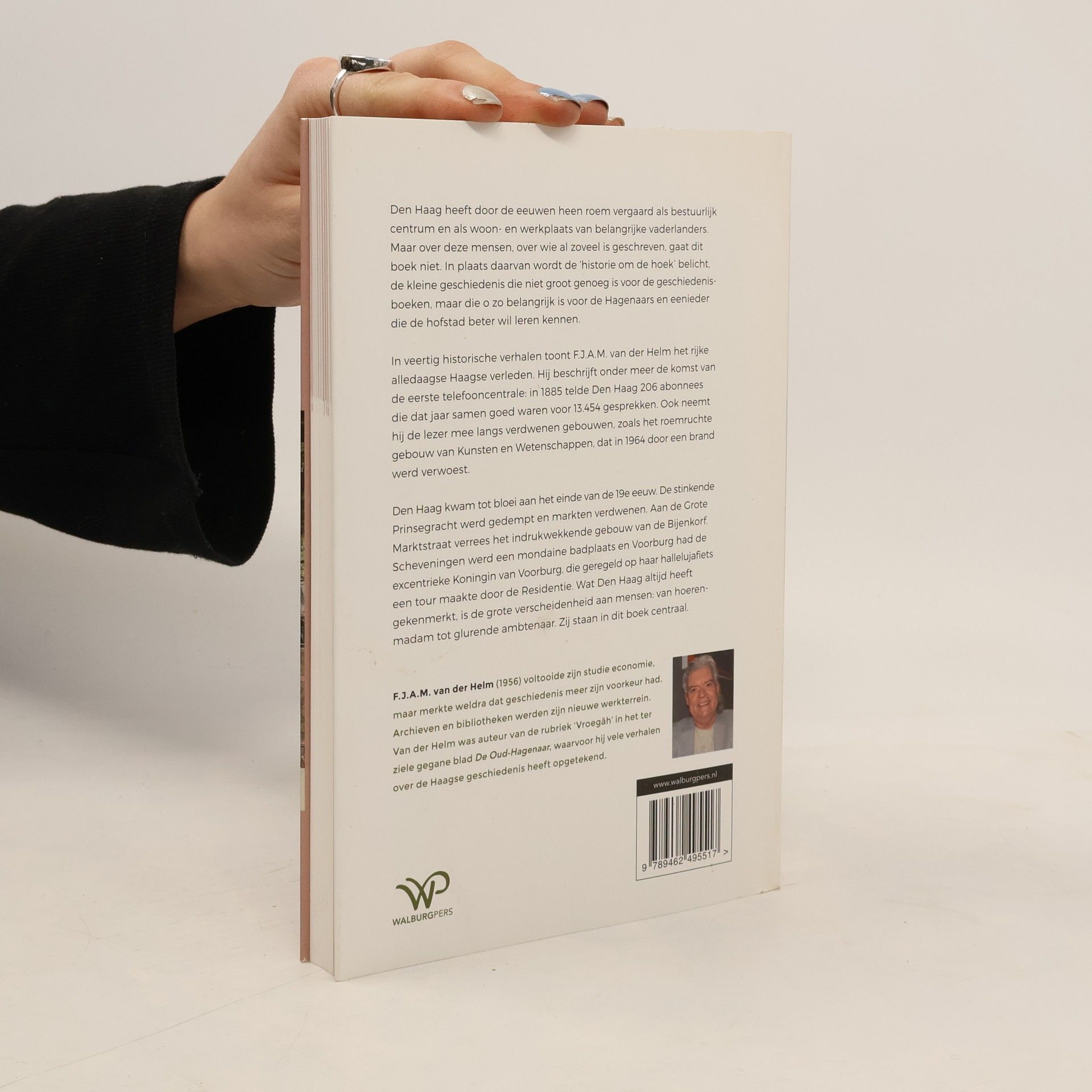 Den Haag heeft door de eeuwen heen roem vergaard als bestuurlijk centrum en als woon- en werkplaats van belangrijke vaderlanders. Maar over deze mensen, waarover al zoveel is geschreven, gaat dit boek niet. In plaats daarvan wordt de ?historie om de hoek? belicht, de kleine geschiedenis die niet groot genoeg is voor de geschiedenisboeken, maar die o zo belangrijk is voor de Hagenaars en eenieder die de hofstad beter wil leren kennen.00In veertig historische verhalen beschrijft F.J.A.M. van der Helm het rijke alledaagse Haagse verleden. Hij neemt de lezer mee langs verdwenen gebouwen, zoals het roemruchte gebouw van Kunsten en Wetenschappen, dat door een brand werd verwoest. Ook beschrijft hij onder meer de komst van de eerste telefooncentrale: in 1885 telde Den Haag 206 abonnees die dat jaar samen goed waren voor 13454 gesprekken.00Den Haag kwam tot bloei. Op de Grote Marktstraat verrees het indrukwekkende gebouw van de Bijenkorf. De stinkende Prinsegracht werd gedempt en markten verdwenen. Scheveningen werd een mondaine badplaats en Voorburg had de excentrieke Koningin van Voorburg, die geregeld op haar hallelujafiets een tour maakte door de Residentie. Wat Den Haag altijd heeft gekenmerkt, is de grote verscheidenheid aan mensen: van hoerenmadam tot glurende ambtenaar. Zij staan in dit boek centraal.