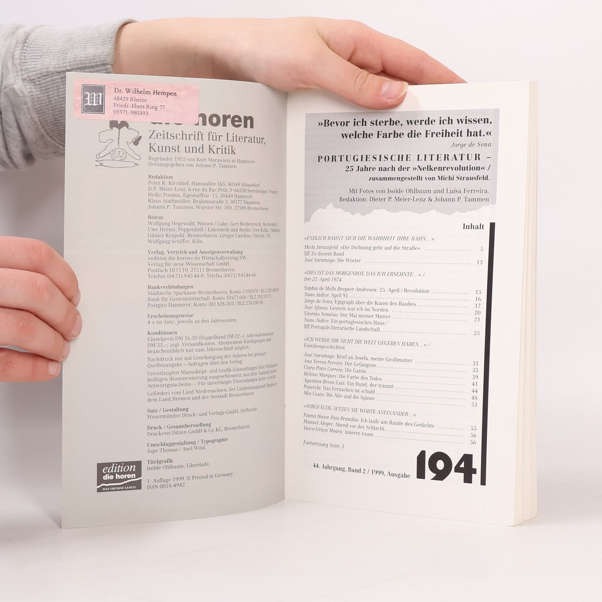 Die Horen 194, Auteurscollectief