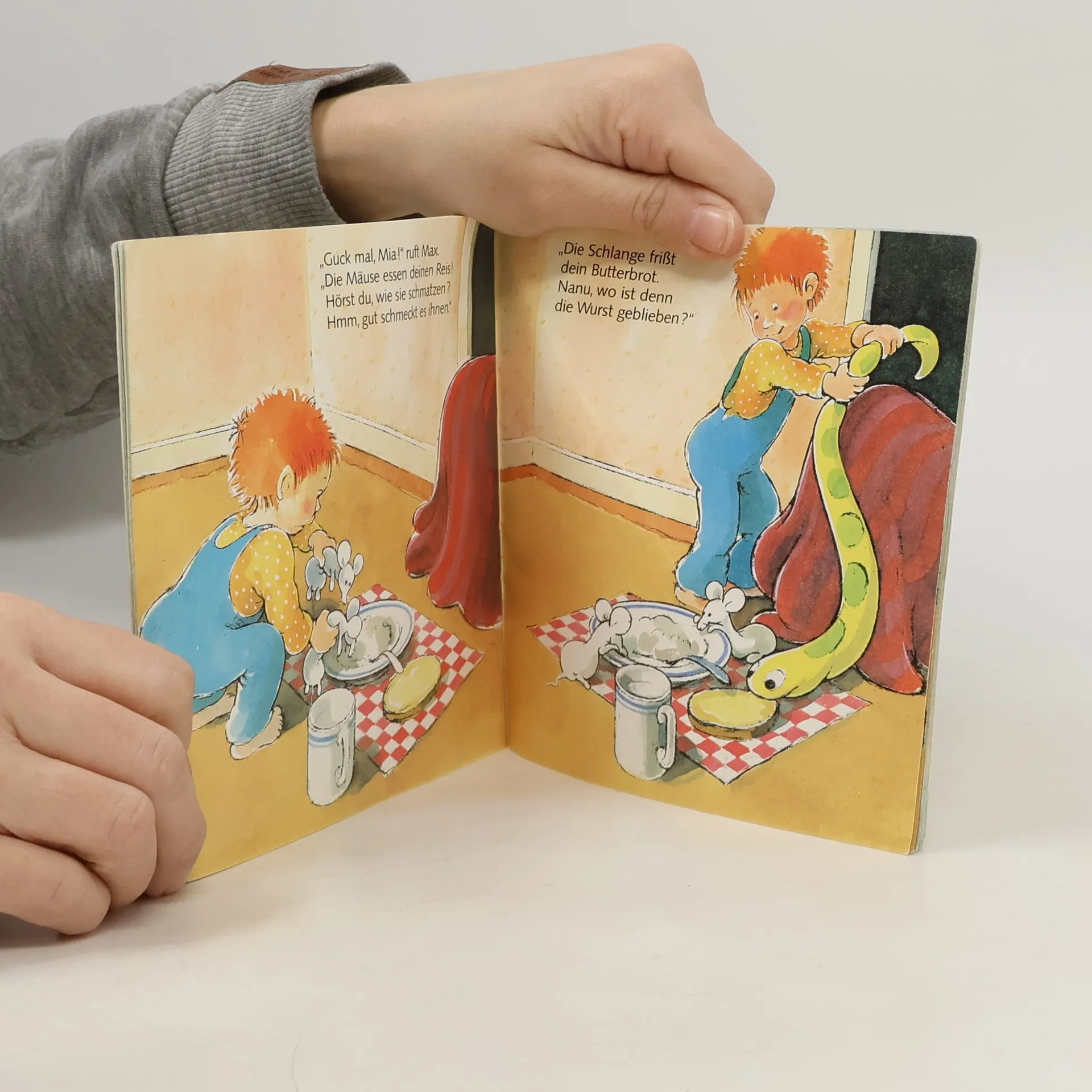 Mother washes Mia's hair and wants to cut it. Mia doesn't want to, and hides in her room all day. Finally Max and Mother make her a crown of flowers, and she is happy.