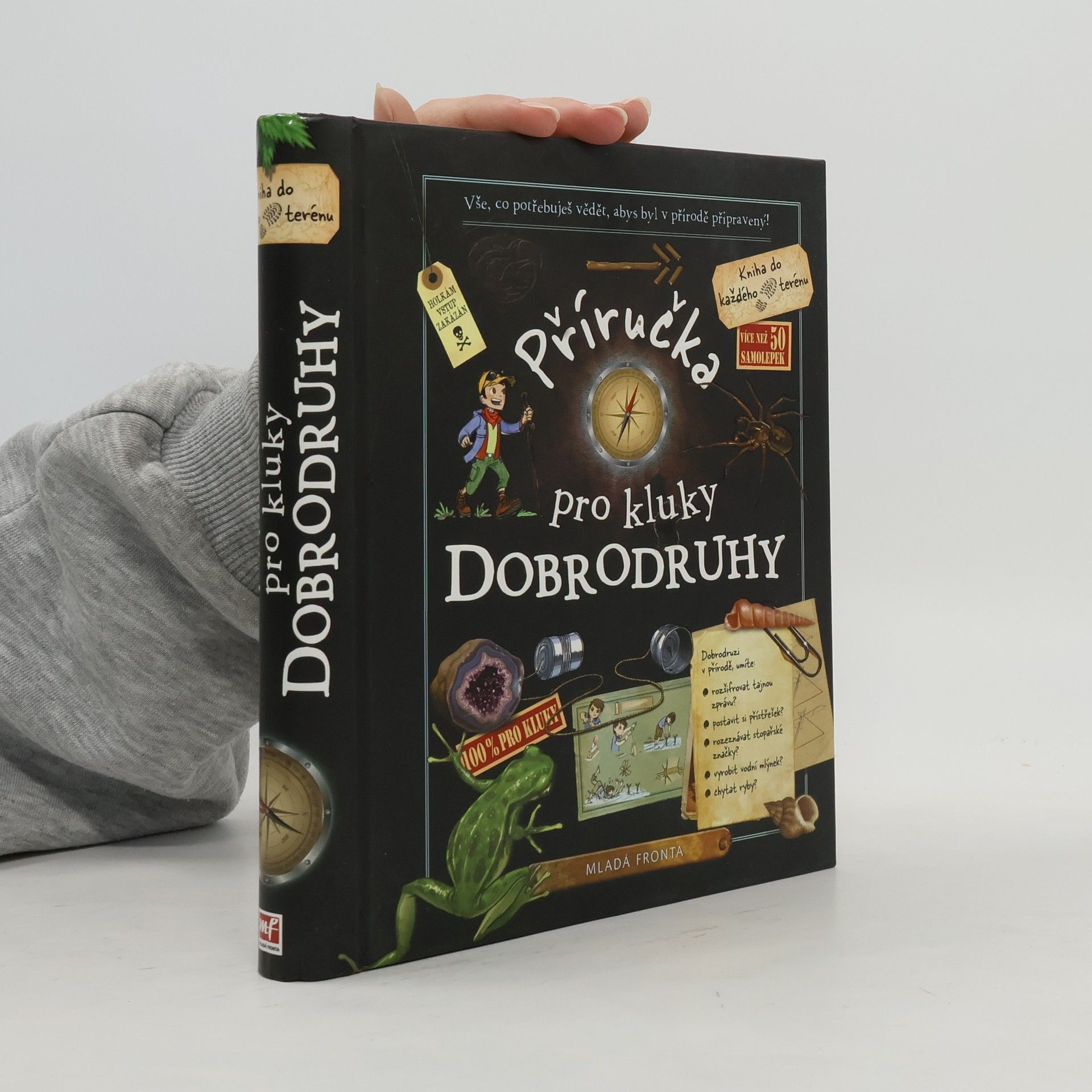 Tuhle knihu by měl mít v knihovničce každý kluk, velký i malý. Poradí mu totiž se spoustou věcí, naučí ho řadu dovedností a rozhodně se s ní nikdy nebude nudit. A proč si ji rovnou nevzít do batohu, aby byla stále po ruce? Více než 40 kapitol nabízí např. návod jak si postavit týpí, vyrobit peněženku, luk a šípy, periskop, vodní mlýnek nebo malé zahradní jezírko, jak ošetřit rány, luštit kódy, poznávat zvířecí stopy, hmyz a ptáky, pozorovat hvězdy, vyznat se v mapě či měřit stromy, a jak pobavit sebe i své kamarády různými druhy her nebo rébusů. Na konci čeká ještě malý dárek - více než 50 samolepek.