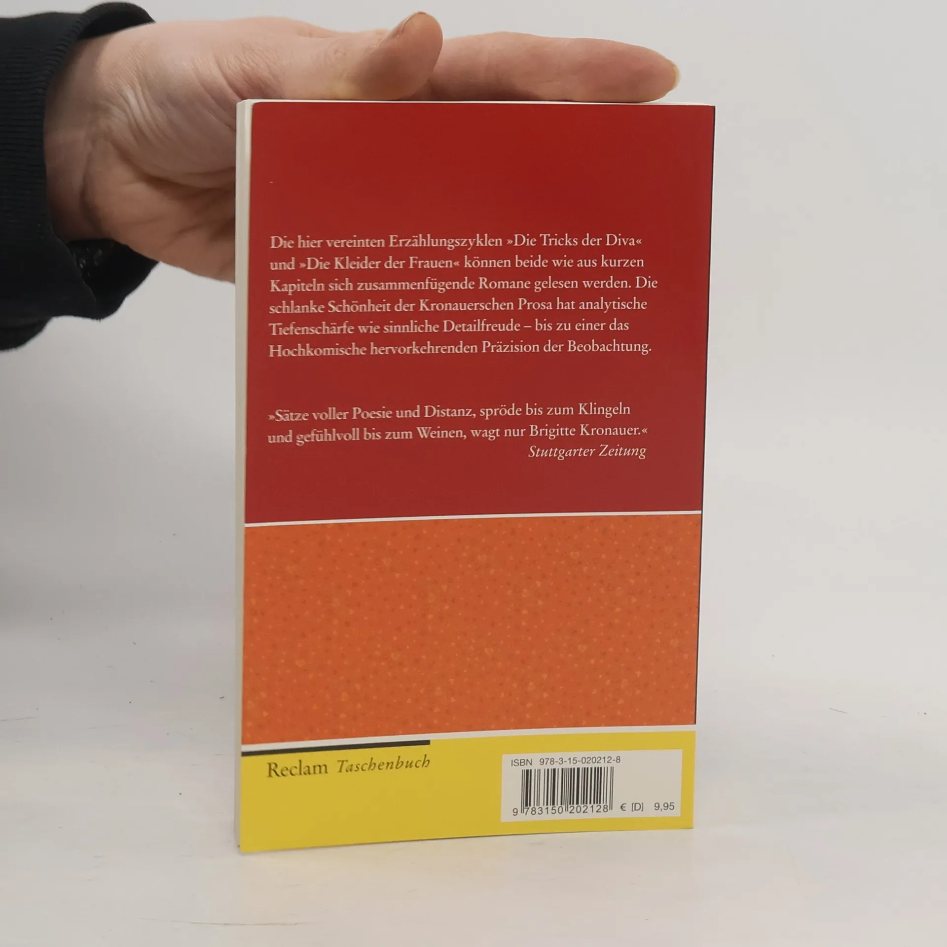 Brigitte Kronauer ist zu gratulieren: zu ihrem unverwechselbaren Stil, zu ihrer Sprache, deren Beweglichkeit und Präzision in hochkomische Höhen führt, zu ihrer Scharfsinnigkeit, von der erkenntnislustige Leser/innen massenweise profitieren können – und zu ihrem 70. Geburtstag am 29. Dezember 2010! Aus diesem Anlass vereinen wir die beiden Erzählungszyklen »Die Tricks der Diva« und »Die Kleider der Frauen« in einem Taschenbuch.