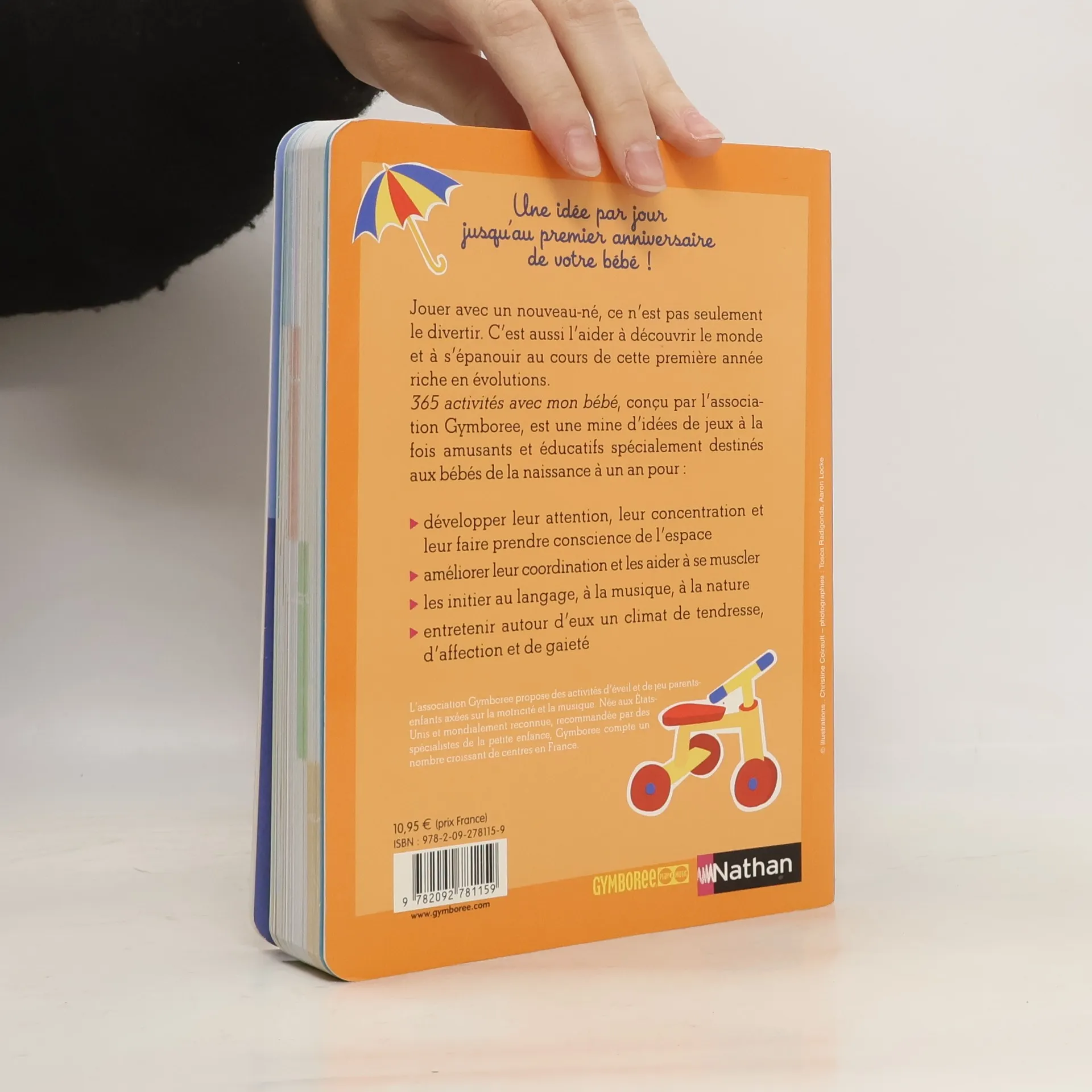 Jouer avec un nouveau-né, ce n'est pas seulement le divertir. C'est aussi l'aider à découvrir le monde et à s'épanouir au cours de cette première année riche en évolutions. 365 activités avec mon bébé, conçu par l'association Gymboree, est une mine d'idées de jeux à la fois amusants et éducatifs spécialement destinés aux bébés de la naissance à un an pour : développer leur attention, leur concentration et leur faire prendre conscience de l'espace, améliorer leur coordination et les aider à se muscler ; les initier au langage, à la musique, à la nature, entretenir autour d'eux un climat de tendresse, d'affection et de gaieté.