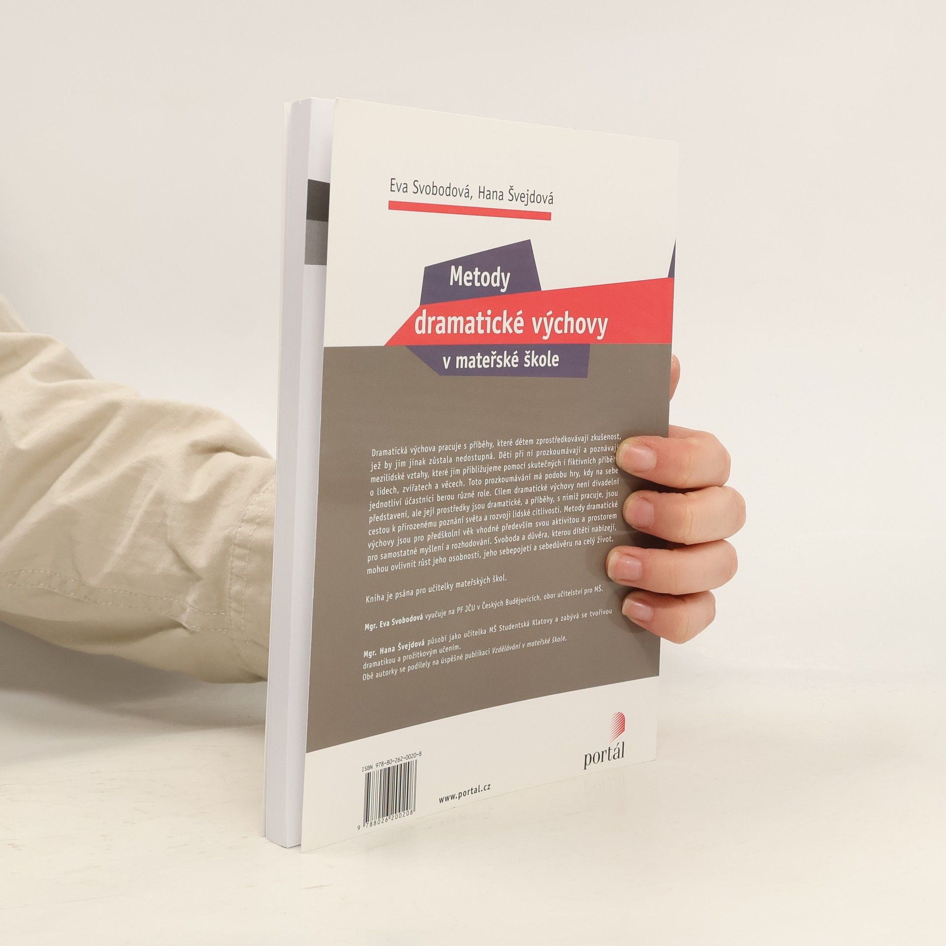 Dramatická výchova pracuje s příběhy, které dětem zprostředkovávají zkušenost, jež by jim jinak zůstala nedostupná. Děti při ní prozkoumávají a poznávají mezilidské vztahy, které jim přibližujeme pomocí skutečných i fiktivních příběhů o lidech, zvířatech a věcech. Autorky v knize postupují krok za krokem přes přehled metod, hledání látek a zdůraznění smyslu a významu pohádky v dramatické práci s předškolními dětmi k práci s příběhem. Věnují se mimo jiné způsobu nakládání s negativními postoji a tématy, která mohou děti do práce přinášet, a jejich využití k pozitivnímu výchovnému působení, dostávají se k problematice vztahu mezi cílevědomostí a připraveností učitelky a jejích schopností pedagogické improvizace, k tématu požadavků společnosti na výchovu, jež jsou obsaženy v RVP PV (morálka, hodnoty, angažovanost učitelky) až k integrovanému celku zabývajícímu se vztahem k přírodě a všemu živému. Knihou prolíná téma vztahů, klimatu a atmosféry, pojetí dítěte a výchovy a v neposlední řadě i důležitost sebereflexe učitelky. Kniha je psána pro učitelky mateřských škol. Mgr. Eva Svobodová vyučuje na PedF JČU v Českých Budějovicích, obor učitelství pro MŠ. Mgr. Hana Švejdová působí jako učitelka MŠ Studentská Klatovy a zabývá se tvořivou dramatikou a prožitkovým učením. Obě autorky se podílely na úspěšné publikaci Vzdělávání v mateřské škole.