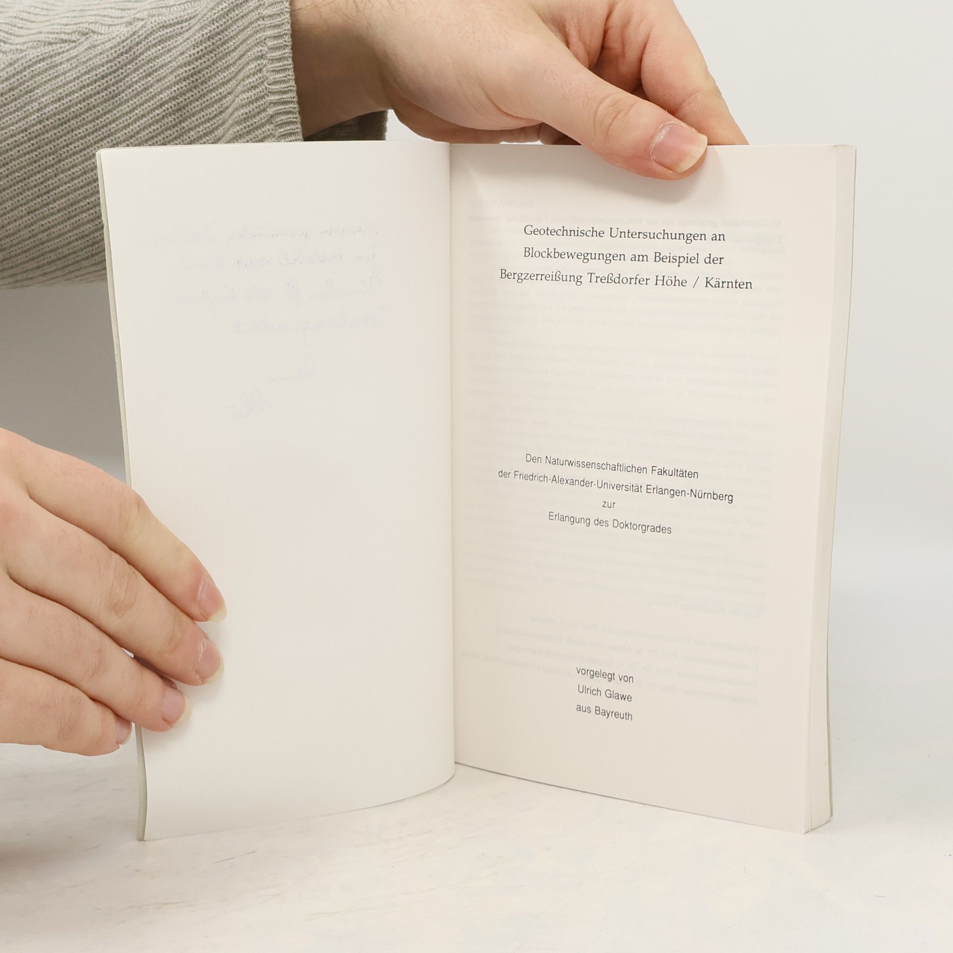 Geotechnische Untersuchungen an Blockbewegungen am Beispiel der Bergzerreißung Treßdorfer Höhe / Kärnten V