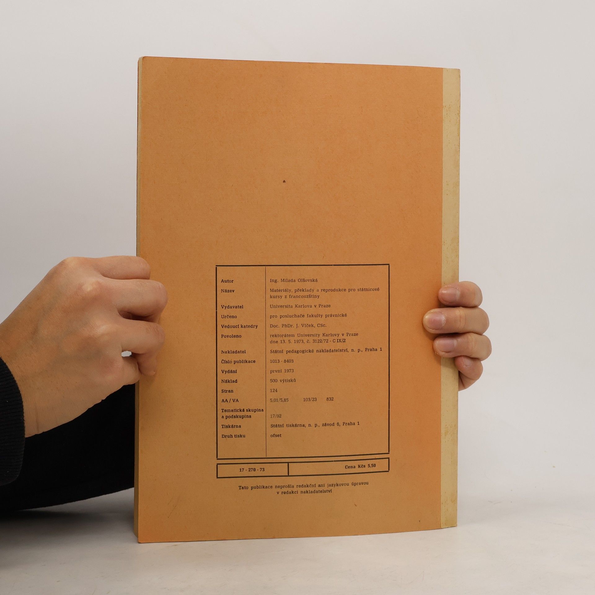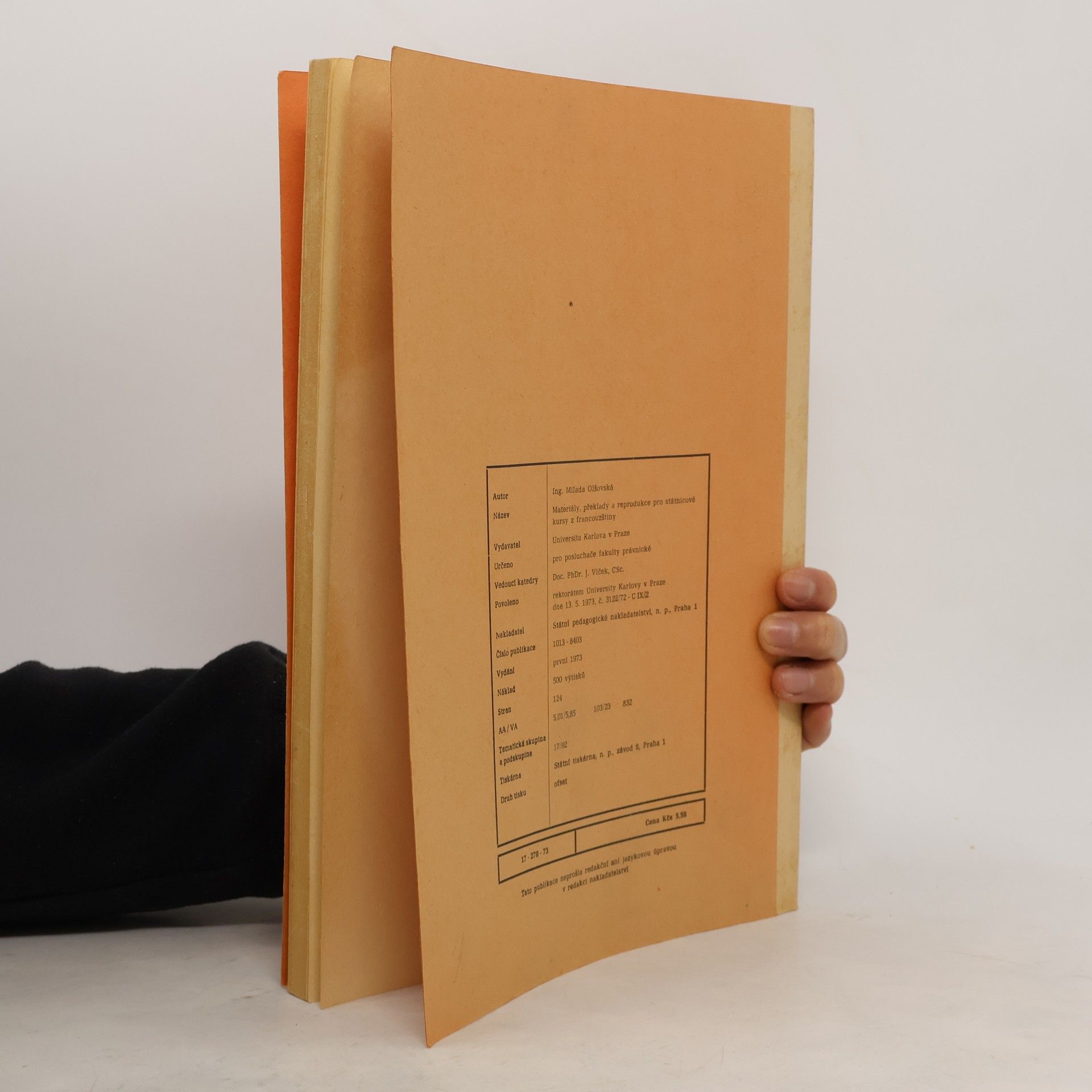 Materiály, překlady a reprodukce pro státnicové kursy francouzštiny, Milada Olšovská