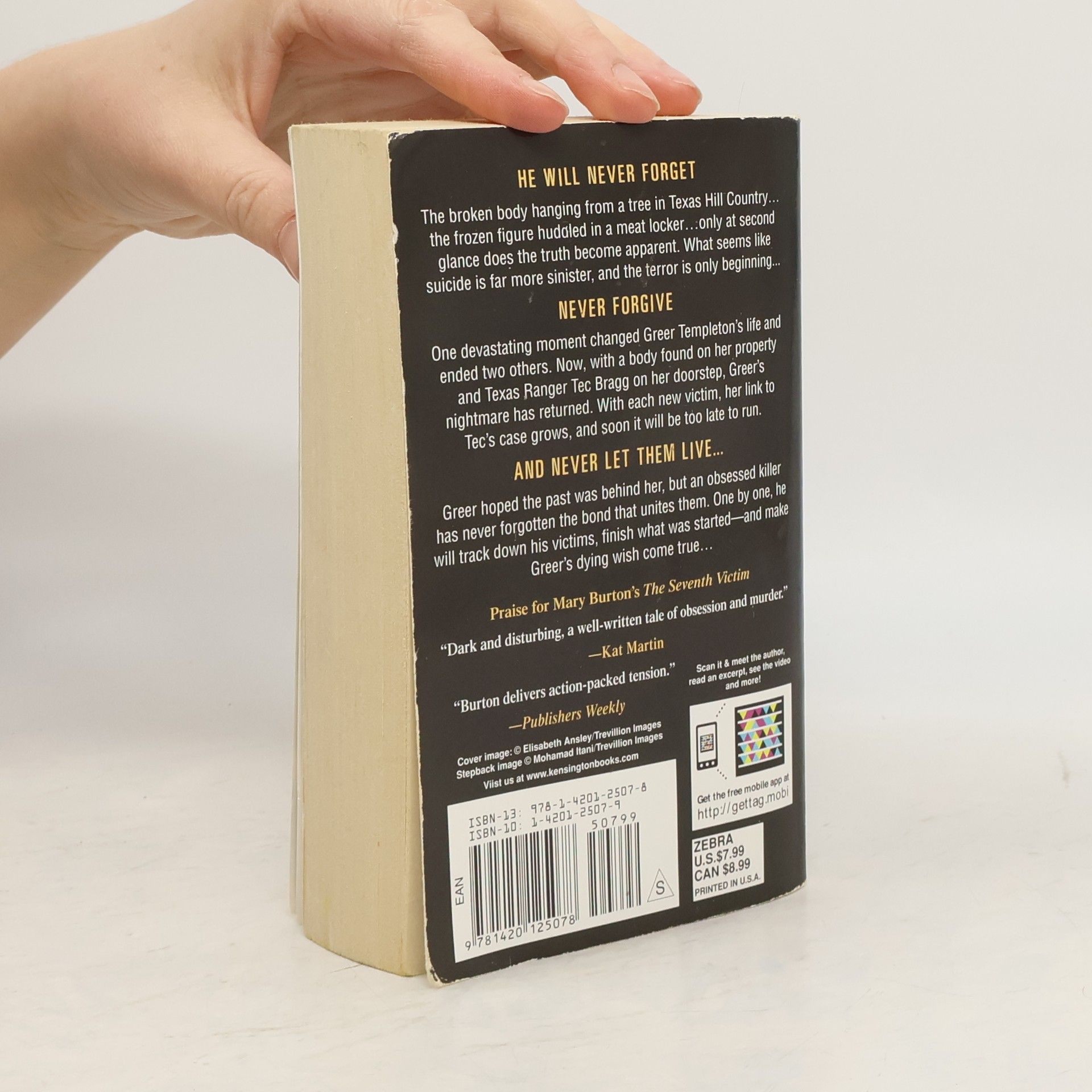 He Will Never ForgetThe broken body hanging from a tree in Texas Hill Country. . .the frozen figure huddled in a meat locker. . .only at second glance does the truth become apparent. What seems like suicide is far more sinister, and the terror is only beginning...Never ForgiveOne devastating moment changed Greer Templeton's life and ended two others. Now, with a body found on her property and Texas Ranger Tec Bragg on her doorstep, Greer's nightmare has returned. With each new victim, her link to Tec's case grows, and soon it will be too late to run.And Never Let Them Live. . .Greer hoped the past was behind her, but an obsessed killer has never forgotten the bond that unites them. One by one, he will track down his victims, finish what was started--and make Greer's dying wish come true. . .