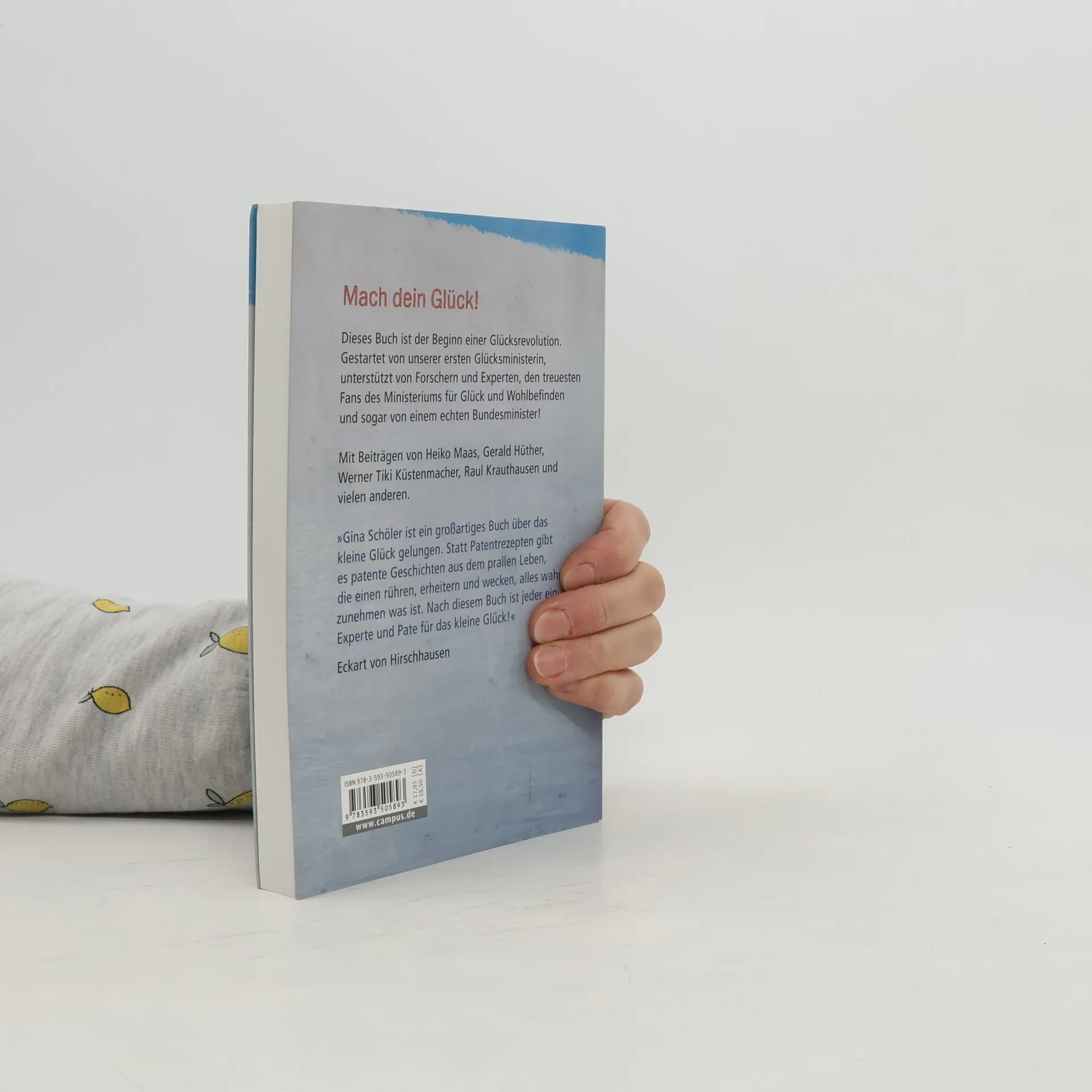 Bruttonationalglück für alle! Glücksministerin Gina Schöler ist auf einer Herzensmission: Menschen glücklich zu machen. In ihrem sinnlichen Schmöker voller kleiner Glücksmomente des Alltags. Die Mini-Essays und "Anstiftungen" aus dem Ministerium für Glück und Wohlbefinden lassen Sie die Stille im Sausen hören, die Süße im Sauren schmecken und das Glück der heimlichen Freuden wieder spüren. Eine herrliche Entschleunigung des Alltags schon beim Lesen! Unterstützt wird Gina Schöler von Glücksforschern und -experten, ihren treuesten Fans und Freunden - und sogar von einem echten Bundesminister! Das erste Buch der Glücksministerin erscheint mit Beiträgen von Heiko Maas, Eckart von Hirschhausen, Gerald Hüther, Stefan Frädrich, Raul Krauthausen und vielen anderen. Eine beherzte Lektüre für mehr Glück im Land!
