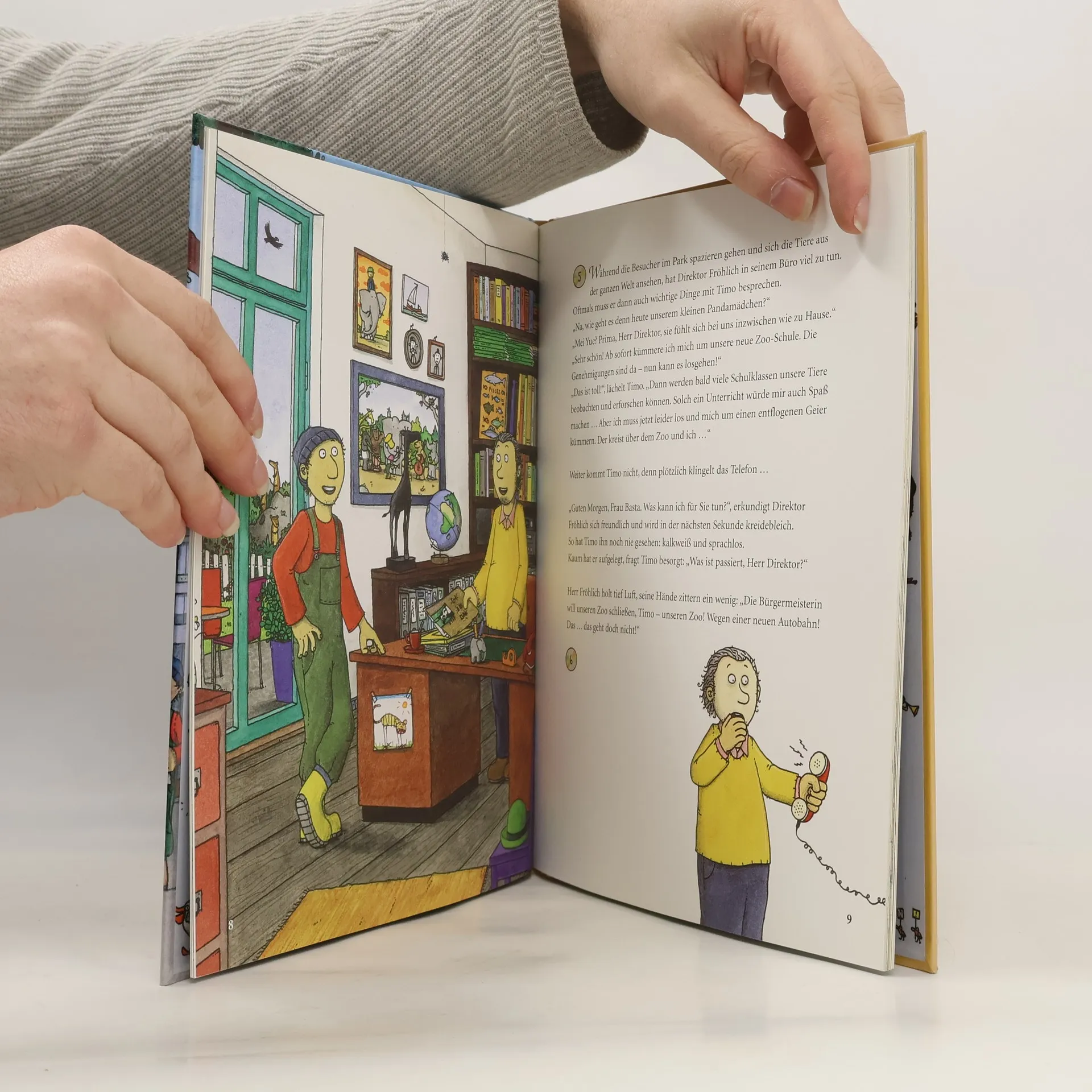 Bürgermeisterin Basta plant den Bau einer Autobahn, und das ausgerechnet quer durch das Gelände des Zoos: Die Gehege sollen abgerissen und die Tiere in andere Zoos verlegt werden. Eine schreckliche Vorstellung – nicht nur für Direktor Fröhlich, Pfleger Timo und die tierischen Mitbewohner. Damit dieser Albtraum nicht wahr wird, denken sich alle zusammen einen ungewöhnlichen Krisenplan aus – einen Plan, der viele Menschen in den Zoo lockt. Mit Musik, Abendführungen und Tierpatenschaften sammeln die Tiere Geld und suchen Freiwillige zur Instandsetzung des Zoos. Immer dabei ist das buntgemischte Zoo-Orchester mit seinen Melodien wie dem Geier-Blues, Es-geht-mir-gut-Boogie-Woogie oder Schlangen-Swing. Nun muss nur noch Bürgermeisterin Basta von ihrem Plan abgebracht werden. Rettet den Zoo ist eine spannende und begeisternde Geschichte für Kinder ab 5 Jahren. Das ansteckende Demolied und viele beschwingte Melodien machen dieses Kinderkonzert zu einem unvergessenen Erlebnis für das ganze Publikum. (siehe auch: Christian Klaessen, Der Elefantenpups – Direktor Fröhlich und das Zoo- Orchester / Sebastian Laverny, Der Elefantenpups – Ein tierischer Geheimplan)