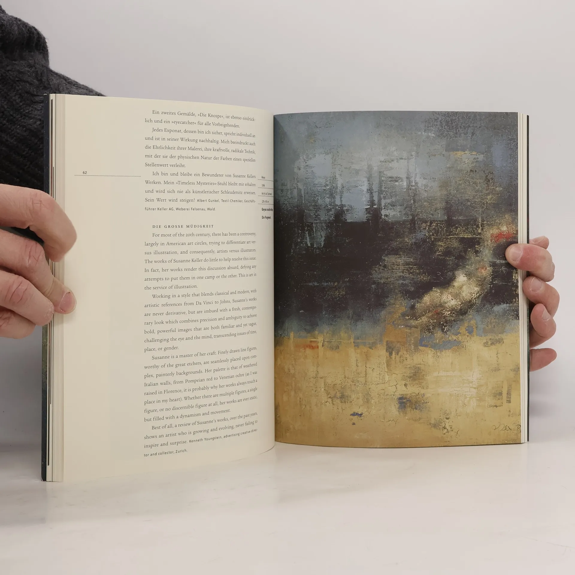 Das malerische Werk einer Frau an der Wende zum neuen Jahrtausend zeigt eine faszinierende Mischung aus Vorwärts- und Rückschritt, Figurativem und Abstraktem. In ihrem dritten Werkkatalog verzichtet Susanne Keller auf eine kunsthistorische Analyse und setzt stattdessen auf die emotionale Kompetenz der Bilderbesitzer. Diese kommentieren ihre Werke mit persönlichen Texten, ergänzt durch ein ausführliches Interview mit der Künstlerin, das Einblicke in ihre Arbeitsprozesse und ihre Beziehung zur Kunst bietet. Susanne Keller, geboren 1954 in Wald ZH, lebt seit 1983 in der Zürcher Altstadt und hat eine Ausbildung an der Schule für Gestaltung in Zürich absolviert. Ihre Werke, die seit 1990 entstanden sind, pendeln zwischen Abstraktion und gegenständlicher Malerei, wobei Farbgebung und Farbauftrag eine zentrale Rolle spielen. Die Künstlerin betont die Bedeutung von Berührungs- und Grenzzonen in der Kunst. Der Zürcher Versus Verlag, bekannt für Wirtschafts- und Managementliteratur, präsentiert in der Kunstbuchreihe versus arte diesen Werkkatalog, der über 100 Farbbilder enthält. Unkonventionell wird das Bildmaterial nicht kunstkritisch interpretiert, sondern direkt den Käufern gegenübergestellt. Mütter, Bankiers und Köche schildern ihre persönlichen Erlebnisse mit den Bildern, was zu einer erfrischend leichten und unterhaltsamen Lektüre führt. Ein interessanter Zugang zur zeitgenössischen Kunst.