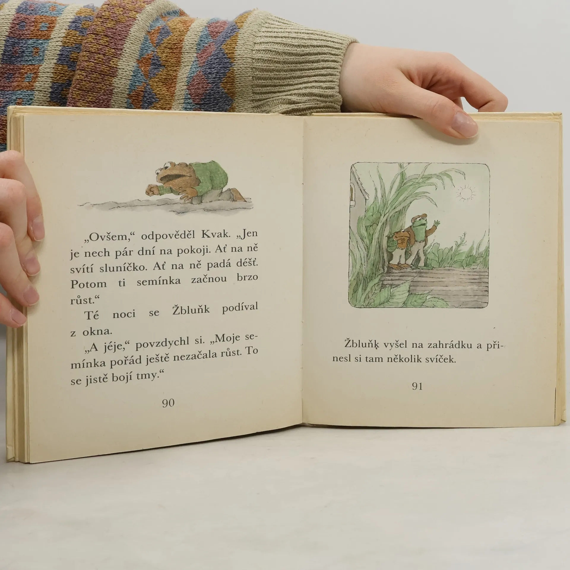 Úsměvné a hřejivé vyprávění o dvou kamarádech, zeleném žabákovi Kvakovi a hnědém ropušákovi Žbluňkovi potěšilo čtenáře nejen v zemi svého vzniku, ale i u nás (včetně dalších pokračování). Kdo by si tedy znovu rád nepřečetl o drobných příhodách a patáliích, které potkaly oba přátelé, když se na jaře probudili ze zimního spánku. Třeba právě o tom, jak hledali ztracený knoflík, jak se koupali v řece, jak pěstovali květiny či jak statečně utíkali před draky a obry. Prolínání fantazie s realitou umocňuje kouzlo této milé knížky, která je přímo stvořená pro začínající čtenáře.