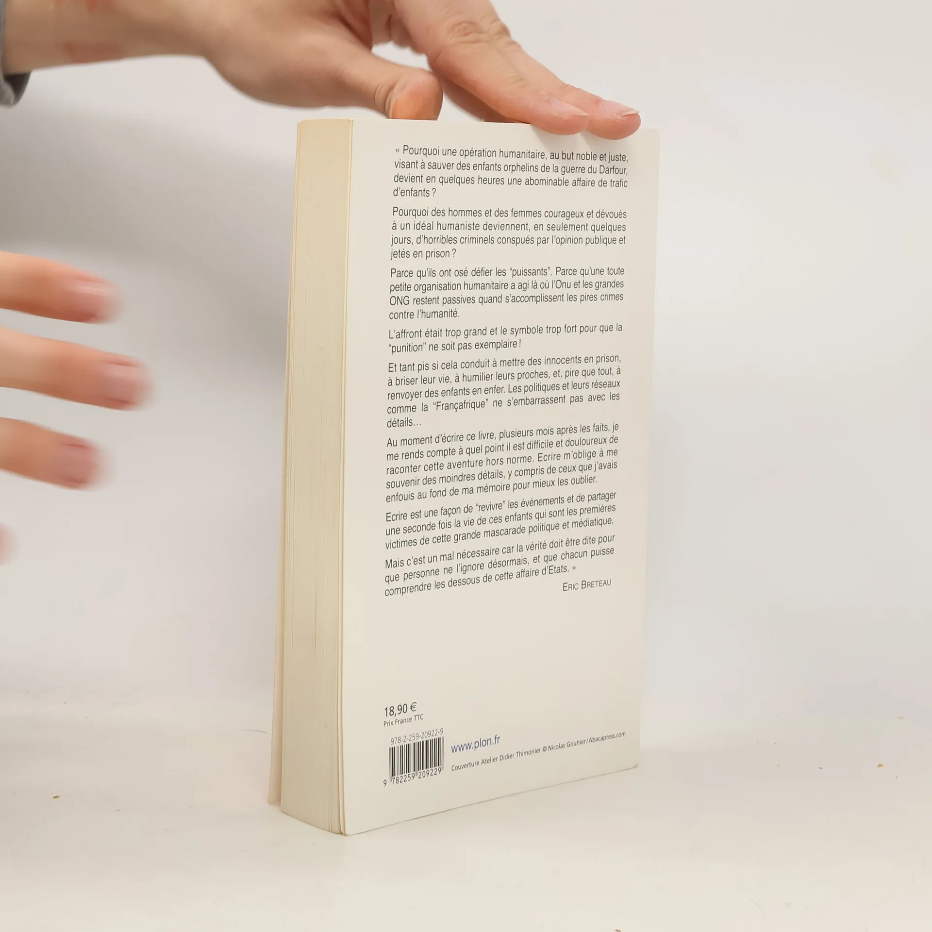 Pourquoi une opération humanitaire visant à sauver des enfants devient en quelques heures une abominable affaire d'Etat. " Pourquoi une opération humanitaire, au but noble et juste, visant à sauver des enfants orphelins de la guerre du Darfour, devient en quelques heures une abominable affaire de trafic d'enfants ?Pourquoi des hommes et des femmes courageux et dévoués à un idéal humaniste deviennent, en seulement quelques jours, d'horribles criminels conspués par l'opinion publique et jetés en prison ?Parce qu'ils ont osé défier les " puissants ". Parce qu'une toute petite organisation humanitaire a agi là où l'ONU et les grandes ONG restent passives quand s'accomplissent les pires crimes contre l'humanité.L'affront était trop et grand et le symbole trop fort pour que la " punition " ne soit pas exemplaire !Et tant pis si cela conduit à mettre des innocents en prison, à briser leur vie, à humilier leurs proches, et pire que tout, à renvoyer des enfants en enfer. Les politiques et leurs réseaux comme la " Françafrique " ne s'embarrassent pas avec les détails...Au moment d'écrire ce livre, plusieurs mois après les faits, je me rends compte à quel point il est difficile et douloureux de raconter cette aventure hors norme. Ecrire m'oblige à me souvenir des moindres détails, y compris ceux que j'avais enfouis au fond de ma mémoire pour mieux les oublier.Ecrire est une façon de " revivre " les événements et de partager une seconde fois la vie de ces enfants qui sont les premières victimes de cette grande mascarade politique et médiatique.Mais c'est un mal nécessaire car la vérité doit être dite pour que personne ne l'ignore désormais, et que chacun puisse comprendre les dessous de cette affaire d'Etats. "Eric Breteau
