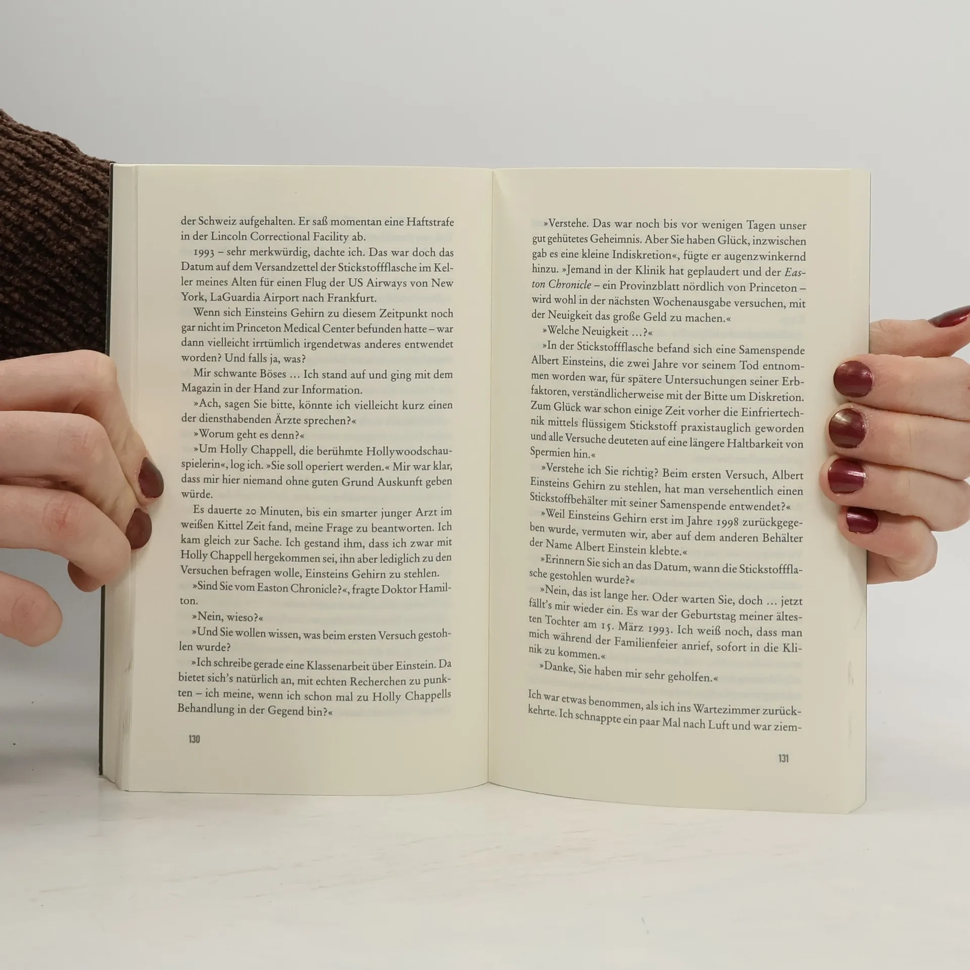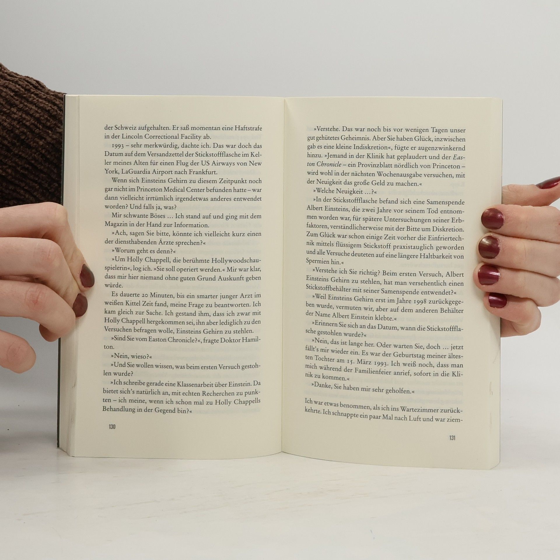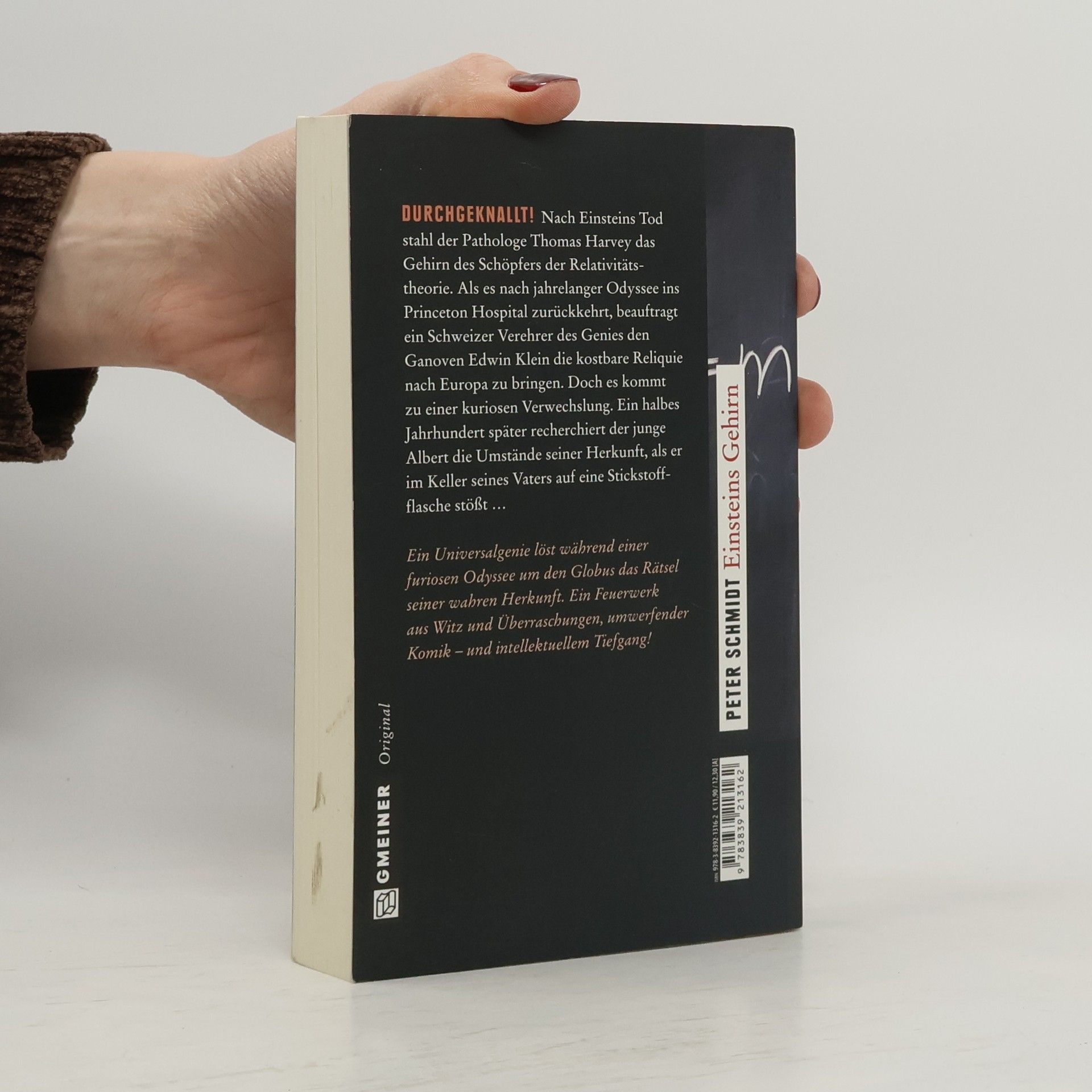 Nach Einsteins Tod stahl der Pathologe Thomas Harvey das Gehirn des Schöpfers der Relativitätstheorie. Als es nach jahrelanger Odyssee ins Princeton Hospital zurückkehrt, beauftragt ein Schweizer Verehrer des Ge-nies den Ganoven Edwin Klein die kostbare Reliquie nach Europa zu bringen. Doch es kommt zu einer kuriosen Verwechslung. Ein halbes Jahrhundert später recherchiert der 14-jährige Albert die Umstände seiner Herkunft, als er im Keller seines Vaters auf eine Stickstoffflasche stößt …