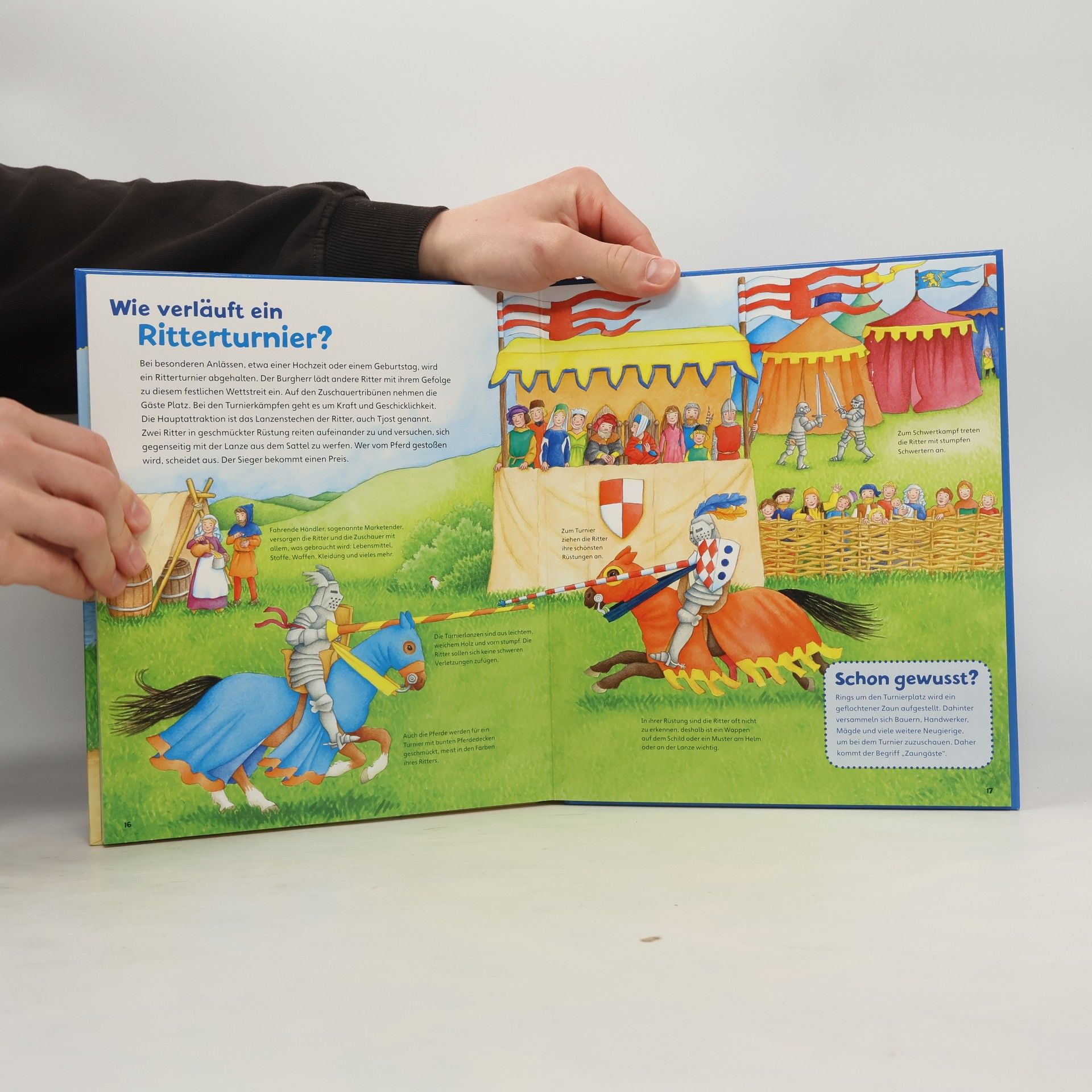Was gehört zu einer Ritterburg? Wie wurde man Ritter? Woraus besteht eine Ritterrüstung? Das erste Sachbuch wendet sich an kleine Entdecker ab 4 Jahren und führt mit kurzen Texten, Entdecker-Klappen, kleinen Rätseln und Spielen in das große Thema Mittelalter ein. Viele anschauliche Details vermitteln ein lebendiges Bild von Burganlage und Palas, Mägden und Knechten, Pagen und Knappen, Gauklern und "fahrendem Volk", Ballista und Katapult. Es werden Mönch und Knappe interviewt und die Benimmregeln für eine Festtafel hinterfragt.
