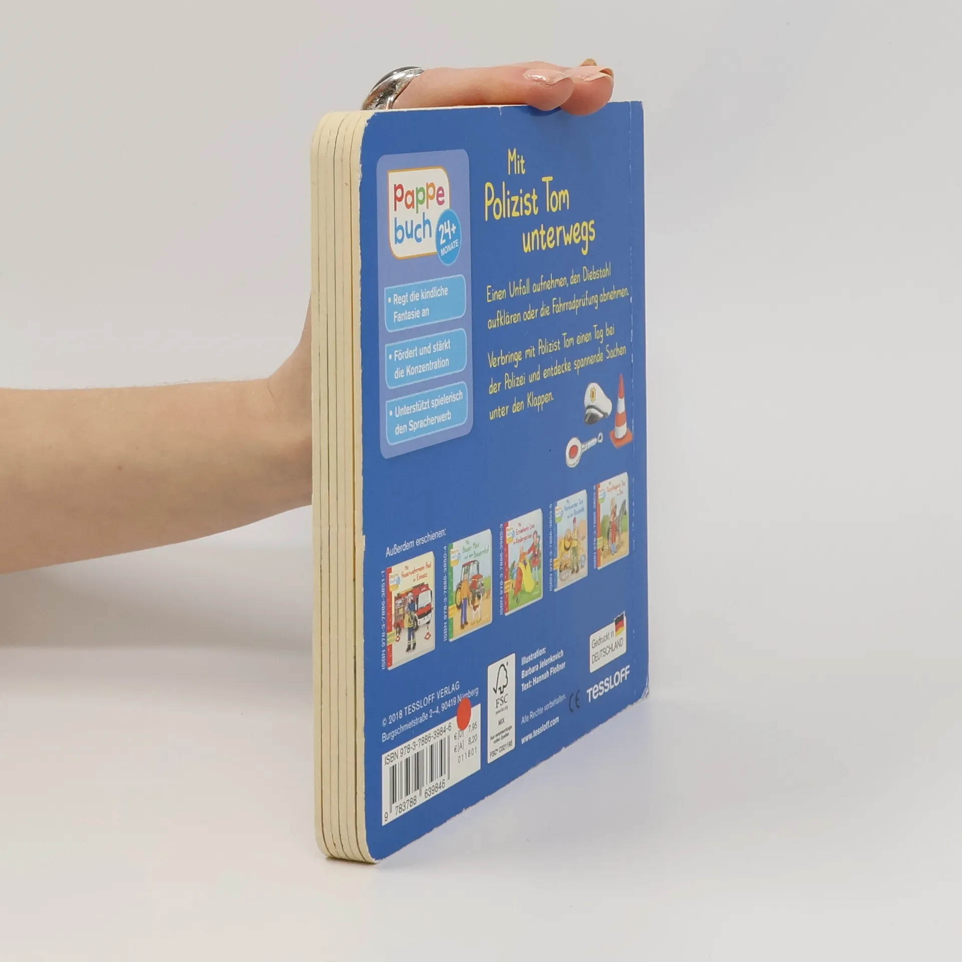 Unfall, Diebstahl und Fahrzeug-Kontrolle - an der Seite von Polizist Tom sind kleine Detektive ab 2 Jahren hautnah dabei. Die Welt mit allen Sinnen zu erleben, lädt die Reihe "Pappebuch von Tessloff" ein. Sie erscheint seit Januar 2017, steht für robuste Bücher aus heimischer Produktion, die hohen qualitativen Ansprüchen genügen und spielerisch die Entwicklung der Kinder unterstützen.
