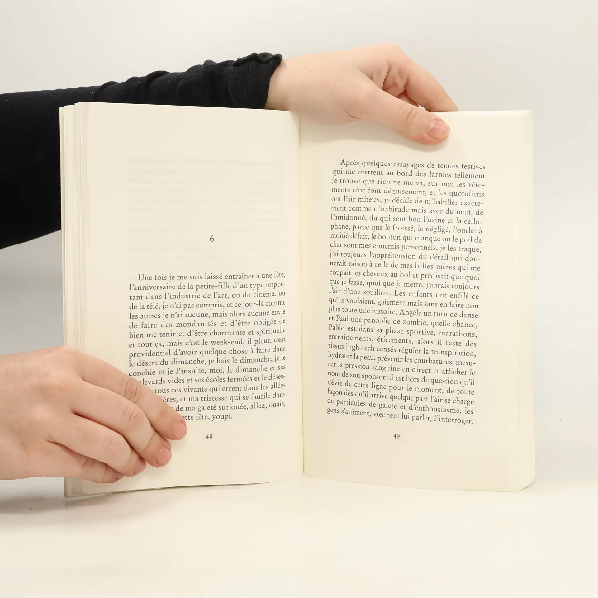 « C’est le paradis, c’est mon paradis, je ne sais plus rien de la politique, des livres qui paraissent, des films, des projets de Pablo, de l’autre vie, la leur, c’est comme un jeûne, une ascèse puéricultrice, c’est comme si j’avais été opérée de ma vie d’avant, je ne sais pas si ça reviendra, je ne sais même pas si je le souhaite, j’adore cette nouvelle vie de mère de famille un peu débile mais résignée, les jours cousus les uns aux autres par l’habitude et la routine, je me voue tout entière à mes enfants, je les tiens fort dans mes bras, je les tiens fort par la main, et bien sûr qu’eux aussi me tiennent et qu’ils m’empêchent de tomber, de vriller, bien sûr qu’eux aussi me rassurent, me comblent, me protègent et me procurent cette joie bizarre, assez proche de la tristesse peut-être, parce que je vois bien que ce n’est plus seulement de l’amour, ça, au fond, c’est de l’anéantissement. »