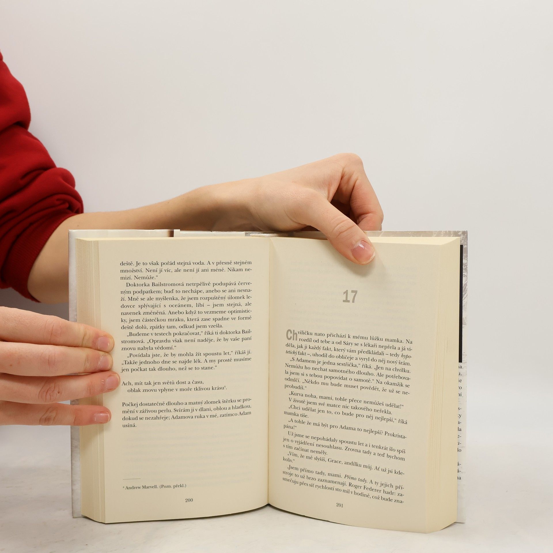 Ve škole vypukl ničivý požár. Uprostřed ničivý plamenů zůstanou i děti Grace, sedmnáctiletá Jenny a osmiletý Adam. Grace, která je shodou okolností zrovna poblíž školy, v tu chvíli myslí jen na jediné – musí své děti zachránit. Za každou cenu... Zatímco Grace i Jenny leží v bezvědomí v nemocnici, jejich duše se oddělují od poraněných tělesných schránek a vidí, co ostatní vidět nemohou. Byl požár jen nehoda, anebo ho někdo založil úmyslně? Kdo by to udělal? A proč? S každou odpovědí se však vynořuje jen stále více a otázek… Grace musí odhalit totožnost pachatele a ochránit před ním svoje děti, protože indicií, které naznačují, že se jim žhář pokusí znovu ublížit, je až podezřele mnoho. Aby se jí to podařilo, musí dokázat nemožné – překročit hranice fyzických slova a pokusit se o zázrak. Psychologický thrilleru s prvky detektivního románu od britské autory Rosamund Luptonové, jejíž prvotina Sestra se stala bestsellerem a získala v roce 2010 ocenění za nejlepší prozaický debut. -- zdroj: www.legie.info --