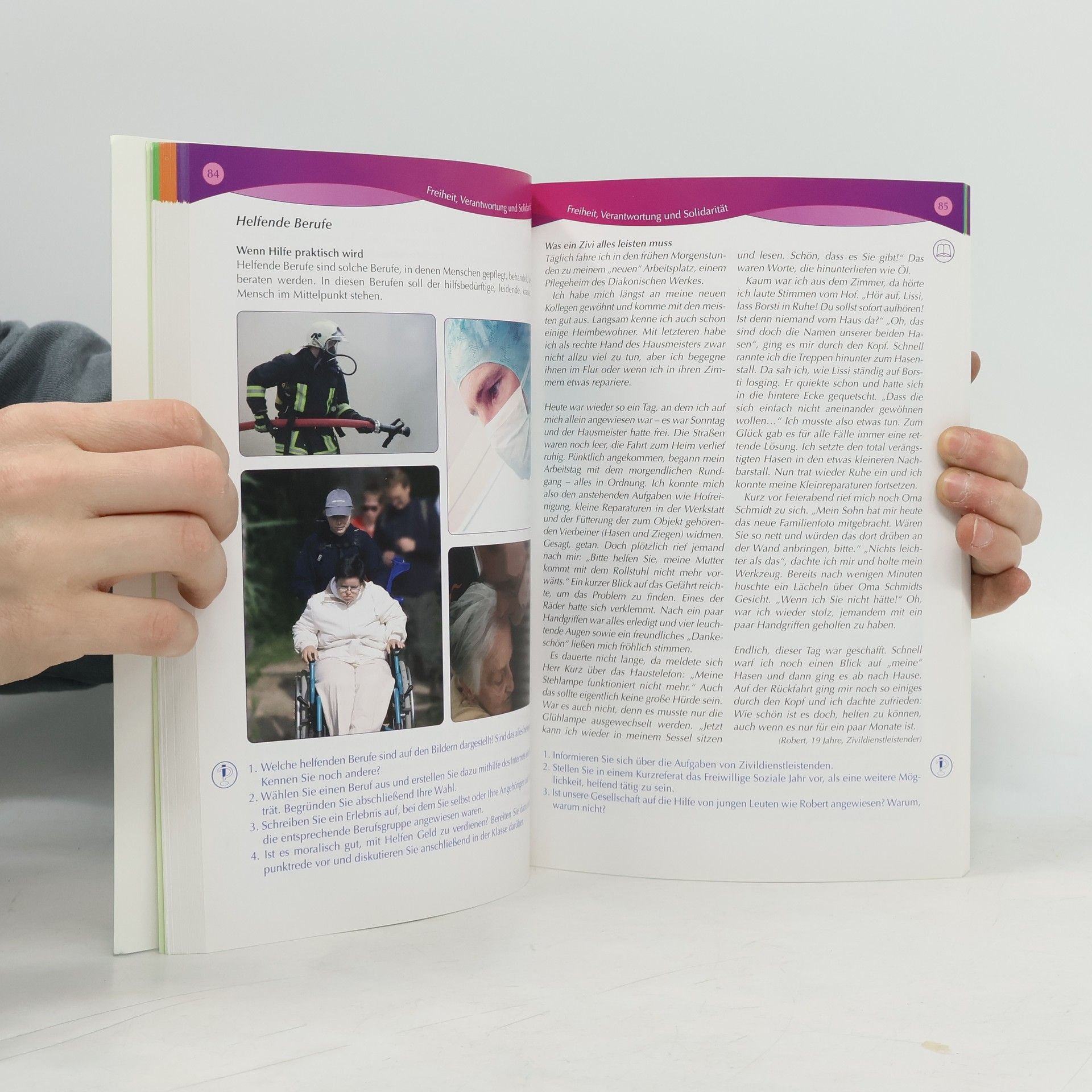 Gemeinsam mit anderen seinen Lebensweg finden. Das Lehrbuch orientiert sich an den sechs Themen des Berliner Lehrplans. Es stellt die Frage in den Mittelpunkt, wie ein junger Mensch seinen Lebensweg finden kann und welche Stolpersteine er dabei beachten muss. Neben Problemen wie Freiheit und Gerechtigkeit spielt vor allem der Themenbereich Wissen, Hoffen und Glauben eine wichtige Rolle. Methodisch wird das Prinzip der Verbindung von Jugendkultur und Philosophie fortgesetzt, eingebettet in aktuelle Zeitungsberichte aus der Berliner Szene. Am Schlussgibt es wieder ein Methodenlexikon und ein Glossar mit wichtigen Begriffen und Autoren.