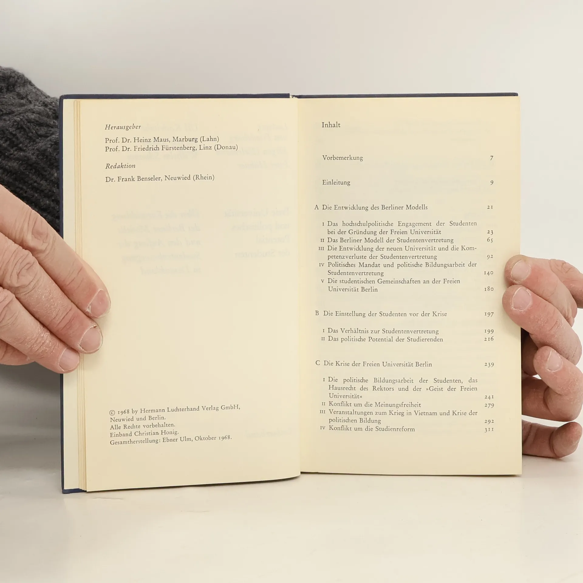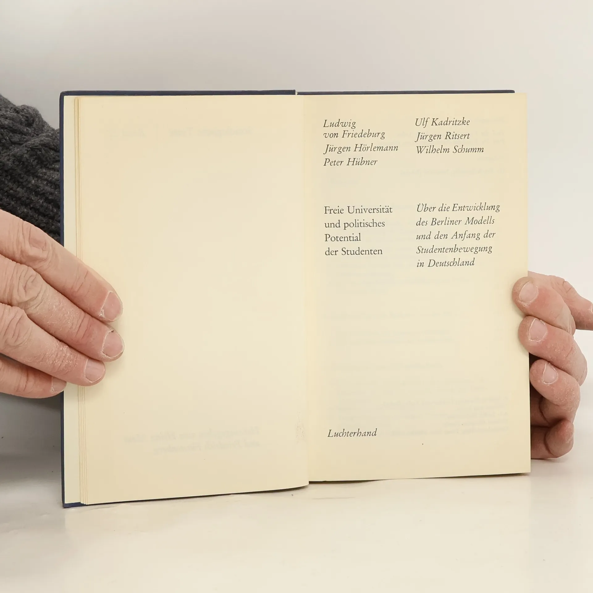 Freie Universität und politisches Potential der Studenten : über die Entwicklung des Berliner Modells und den Anfang der Studentenbewegung in Deutschland, Ludwig von Friedeburg
