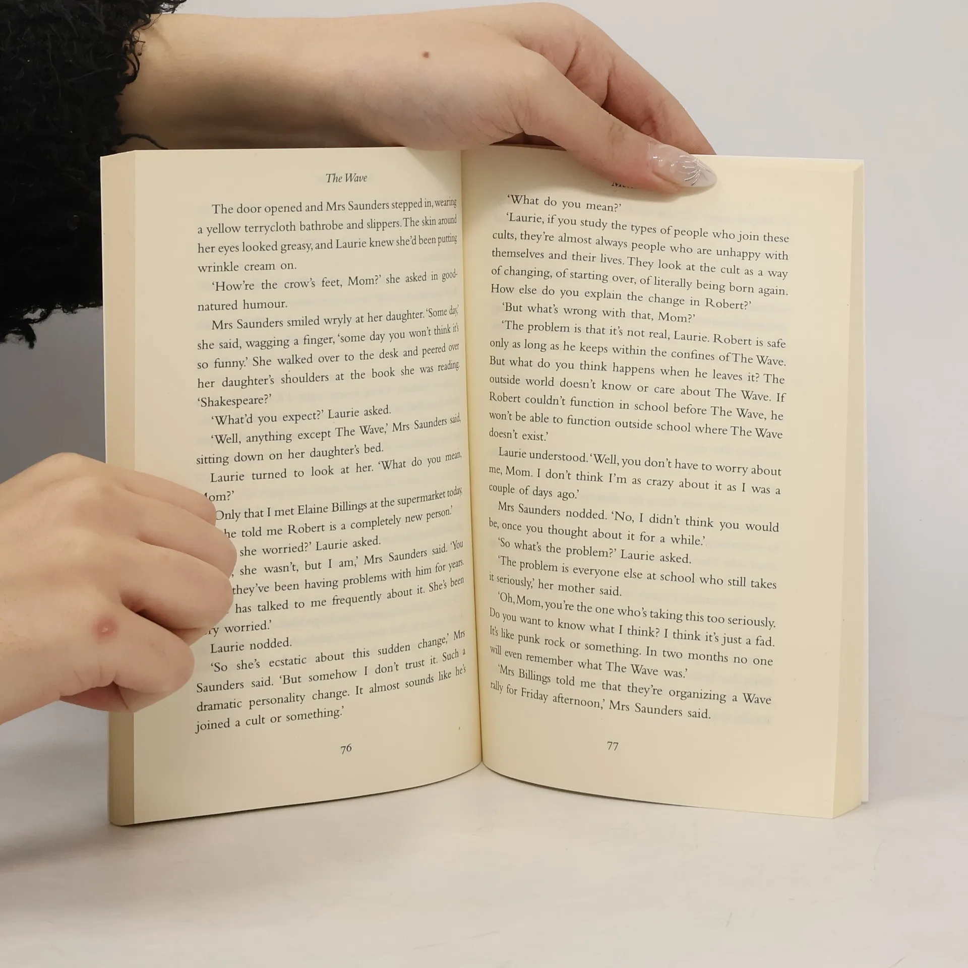 The Wave is based on a true incident that occurred in a high school history class in Palo Alto, California, in 1969. The powerful forces of group pressure that pervaded many historic movements such as Nazism are recreated in the classroom when history teacher Burt Ross introduces a "new" system to his students. And before long The Wave , with its rules of "strength through discipline, community, and action", sweeps from the classroom through the entire school. And as most of the students join the movement, Laurie Saunders and David Collins recognize the frightening momentum of The Wave and realize they must stop it before it's too late.