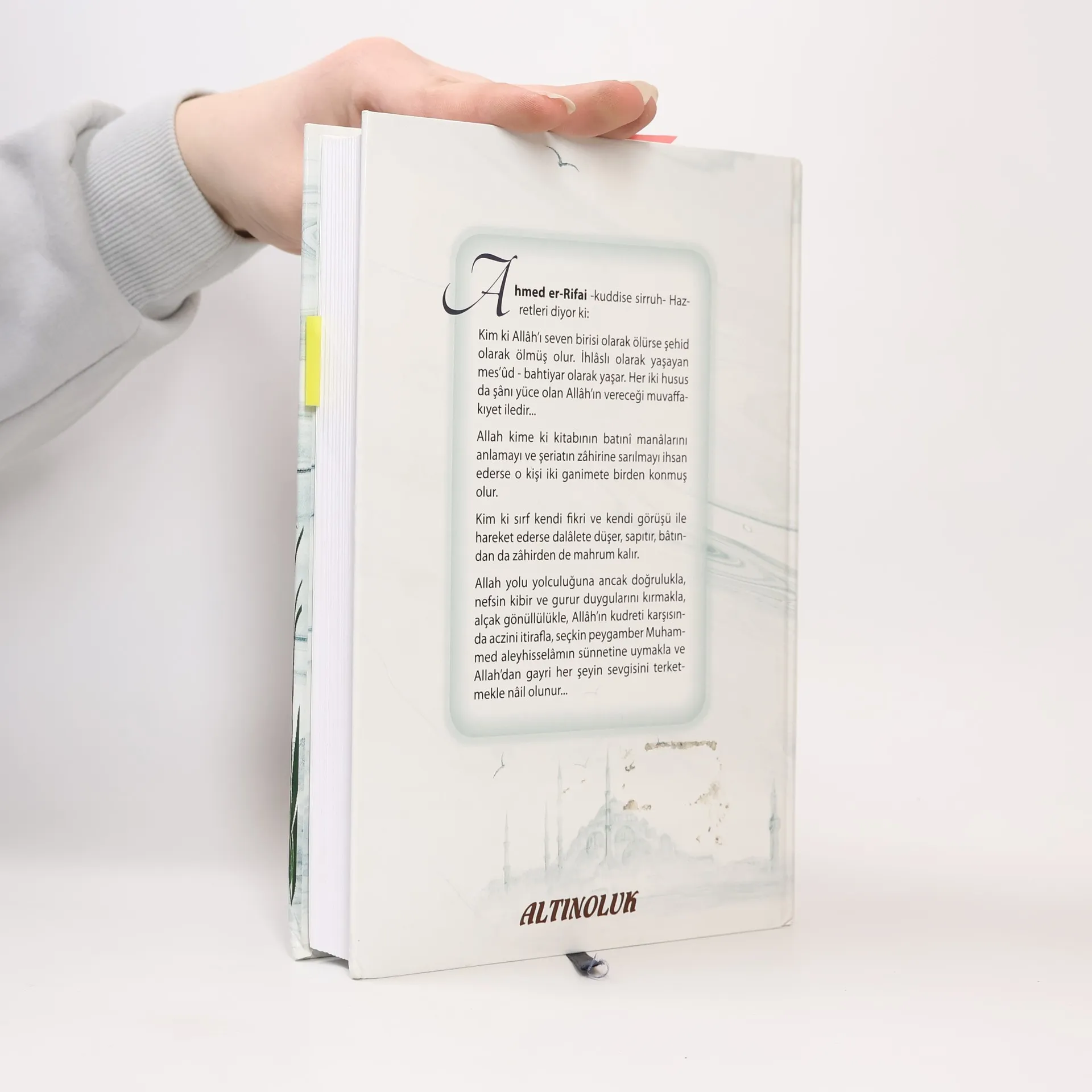 Altınoluk, bu yıl Ahmed er - Rifai -kuddise Sirruh- Hazretleriningönül dünyasını sizlere hediye olarak sunuyor.Elinizdeki kitap, bu güzel Allah dostunun üç eserini ihtiva ediyor:– Onların Alemi. (Hâletü Ehli’l-Hakikati Maallah)– Hak Yolcusunun Düsturları (Kırk Hadis, el Hikemü’r-Rifaiyye, en-Nizamü’l-has isimli eserler)Ve– Sohbet Meclisleri... (el Mecalisü’-Seniyye)Altınoluk okuyucuları, Ahmed er- Rifai’yi tanırlar.Eserleriyle onların gönül sohbetlerine sık sık misafir olan bir Allah dostudur Ahmed er-Rifai...
