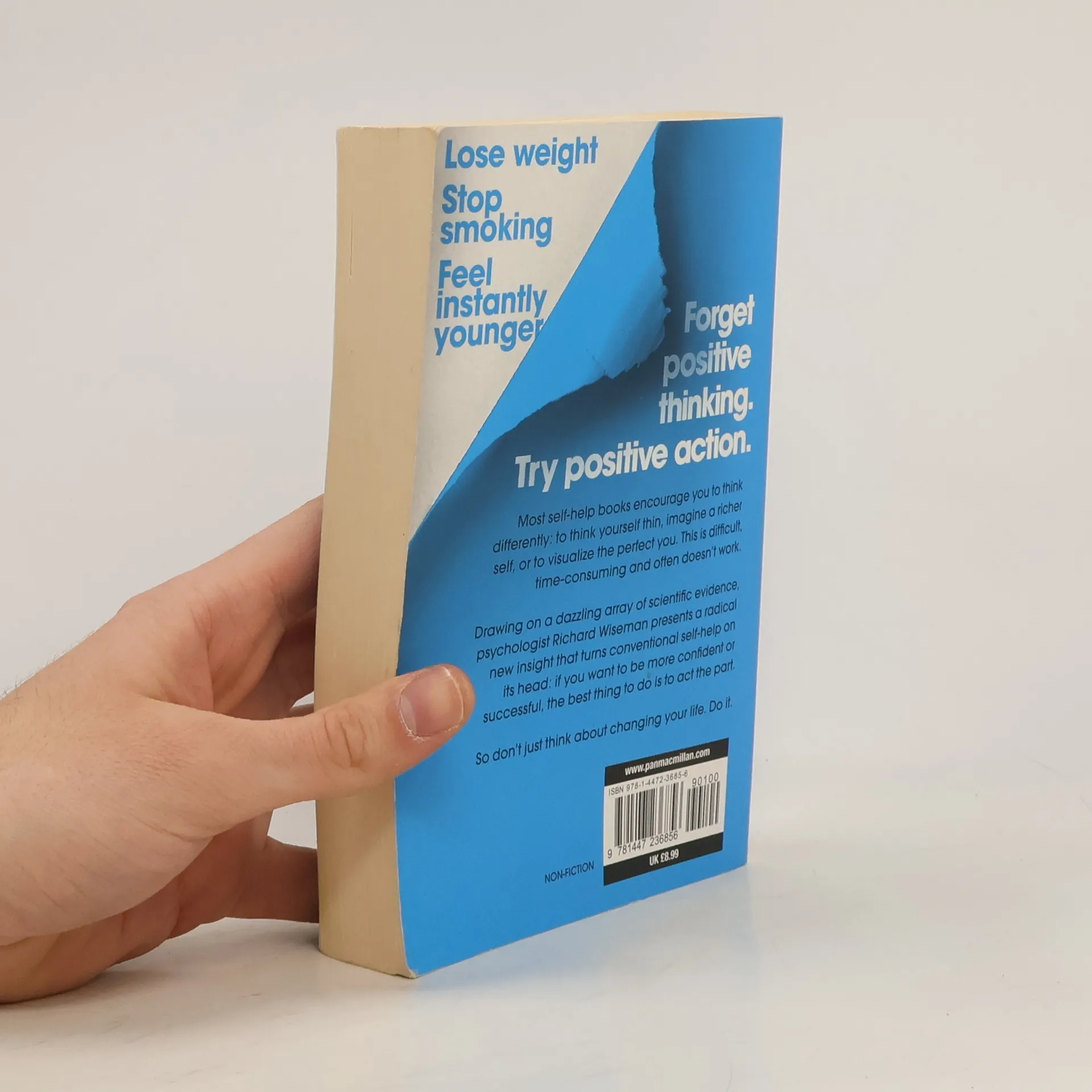 Rip up this book and unleash your hidden potential Most self-help books encourage you to think differently: to think yourself thin, imagine a richer self or to visualize the perfect you. This is difficult, time consuming and often doesn't work. Ripping up the rule book, psychologist Richard Wiseman presents a radical new insight into your body and brain: actions are the quickest, easiest and most powerful way to instantly change how you think and feel. Drawing on a dazzling array of scientific evidence, Professor Wiseman shows how this simple idea can be used to increase motivation, overcome depression, lose weight, stop smoking and even slow ageing. So don’t just think about changing your life. Do it. * Smile and become happier * Clench your fist and increase your willpower * Put a spring in your step and feel instantly younger