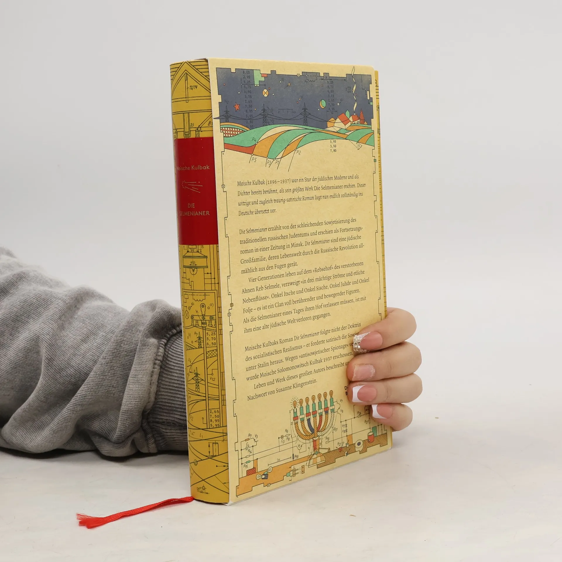 Die Selmenianer sind eine jüdische Großfamilie, deren traditionelle Schtetl-Sentimentalität durch die Umwälzungen der Russischen Revolution und die neue sowjetische Ordnung aus den Fugen gerät. In ihre Stadt schleicht sich das Gespenst des Bolschewismus ein und wird nicht mehr weichen: Sowjetmacht plus Elektrifizierung. Vier Generationen von Selmenianern, allesamt »schwarzhaarig und knochig gebaut«, mit einer »breiten, niedrigen Stirn, fleischigen Nasen und Grübchen in den Wangen« leben auf dem Hof des längst verstorbenen Ahnen Selmele. In dieser Geschichte einer Familie, die sich im Konflikt zwischen Modernisierungsverweigerung und Fortschrittsglauben behaupten muss, leben die dynastischen Erzählungen des Alten Testaments und die heitermelancholische Haltung chassidischer Überlieferungen fort, während zugleich die literarische Doktrin des Sozialistischen Realismus einzieht. In seinem als Fortsetzungsroman in einer Minsker Zeitung zwischen 1929 und 1935 verfassten Selmenianern, stellt sich Moische Kulbak dem Konflikt zwischen dem Jüdisch-Sein und den stalinistischen Vorstellungen vom »Neuen Menschen«.