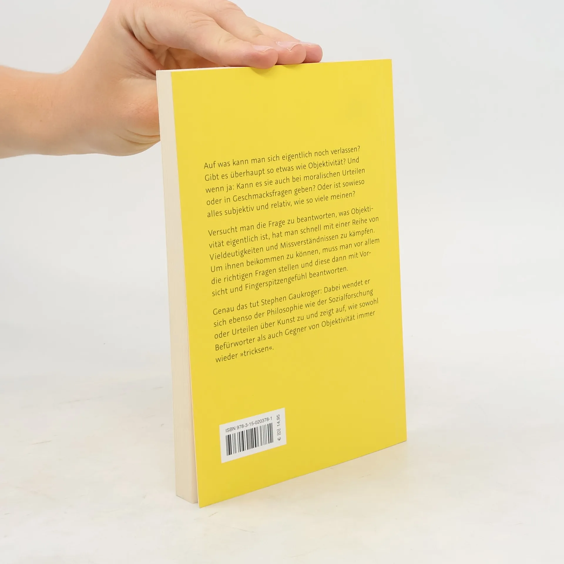 Auf was kann man sich eigentlich noch verlassen? Gibt es so etwas wie Objektivität? Ja, meinen viele – oder doch nicht? Ist Objektivität überhaupt möglich? Und wenn ja: Kann es sie auch bei moralischen Urteilen oder in Geschmacksfragen geben? Oder ist sowieso alles subjektiv und relativ? Wenn man die Frage zu beantworten versucht, was Objektivität eigentlich ist, hat man schnell mit einer ganzen Reihe von Vieldeutigkeiten und Missverständnissen zu kämpfen. Um ihnen beizukommen, muss man die richtigen Fragen stellen. Genau das tut Stephen Gaukroger. Dabei wendet er sich der Philosophie ebenso zu wie der Sozialforschung oder Urteilen über Kunst und zeigt auf, wie sowohl Befürworter als auch Gegner von Objektivität »tricksen«.