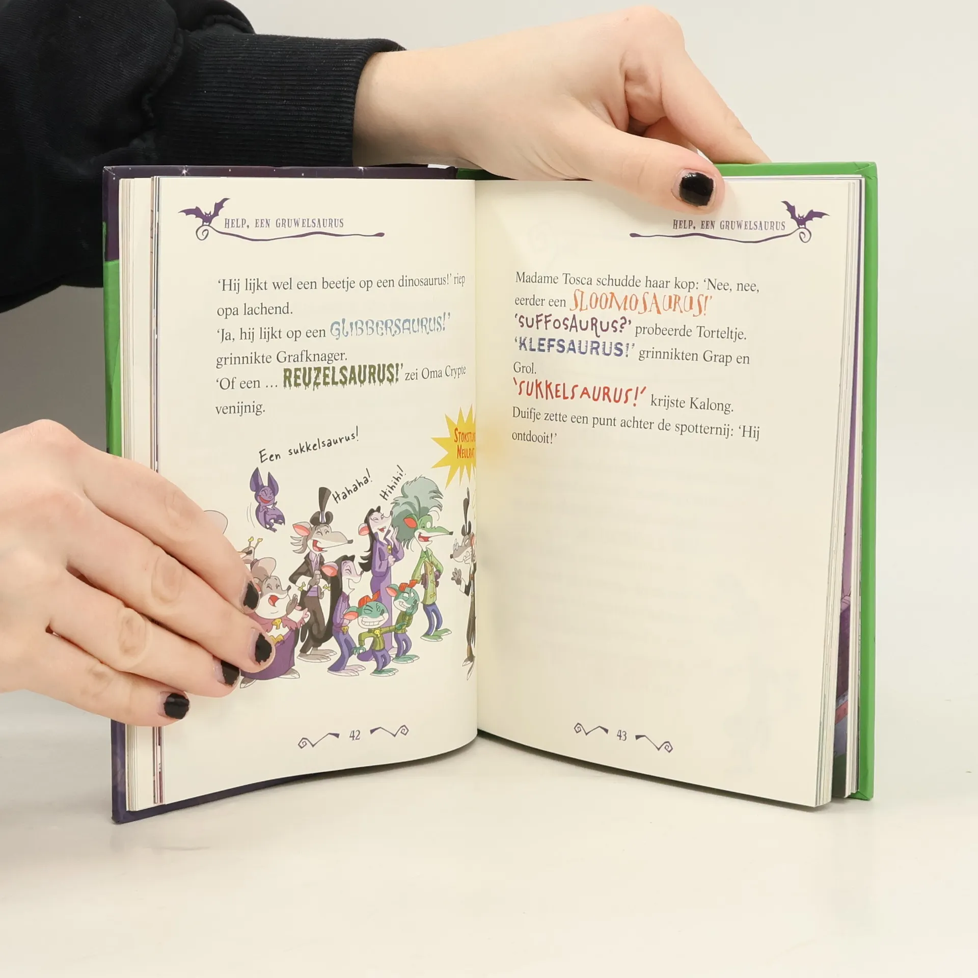 In Lugubria was een skelet gevonden van een gruwelsaurus, een gi-ga-gruwelijk monster dat miljoenen jaren geleden leefde. Toen de familie Duistermuis naar de tentoonstelling ging om hem te bekijken, gebeurde er iets verschrikkelijks: het monsterlijke wezen kwam plotseling tot leven! Wie kon ervoor zorgen dat het beest tot bedaren werd gebracht voordat hij alles en iedereen tot moest stampte? Daar moest een echte held aan te pas komen. Drie keer raden wie Duifje daarvoor in gedachten had...