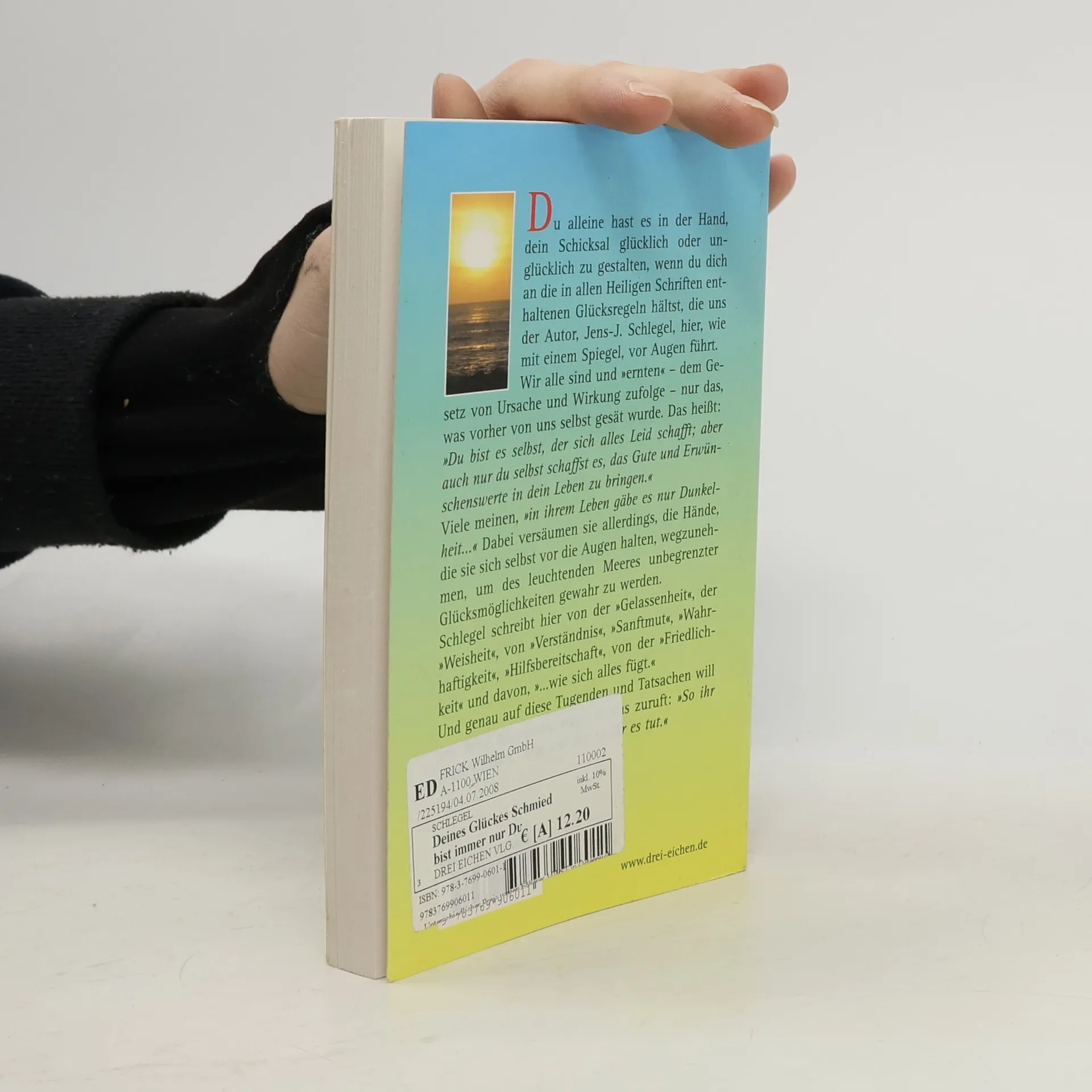 Jeder hat es selbst in der Hand, sein Schicksal glücklich oder unglücklich zu gestalten, wenn man sich an die in allen Heiligen Schriften enthaltenen Glücksregeln hält, die uns der Autor hier vor Augen führt. Wir sind und Ernten dem Gesetz von Ursache und Wirkung zufolge nur das, was vorher von uns selbst gesät wurde. Das heißt: Du bist es selbst, der sich alles Leid schafft; aber auch nur du selbst schaffst es, das Gute und Erwünschenswerte in dein Leben zu bringen. Viele meinen, es sei dunkel in ihrem Leben. Dabei versäumen sie nur, die Hände, die sie sich selbst vor die Augen halten, wegzunehmen, um des leuchtenden Meeres an unbegrenzten Glücksmöglichkeiten gewahr werden zu können.