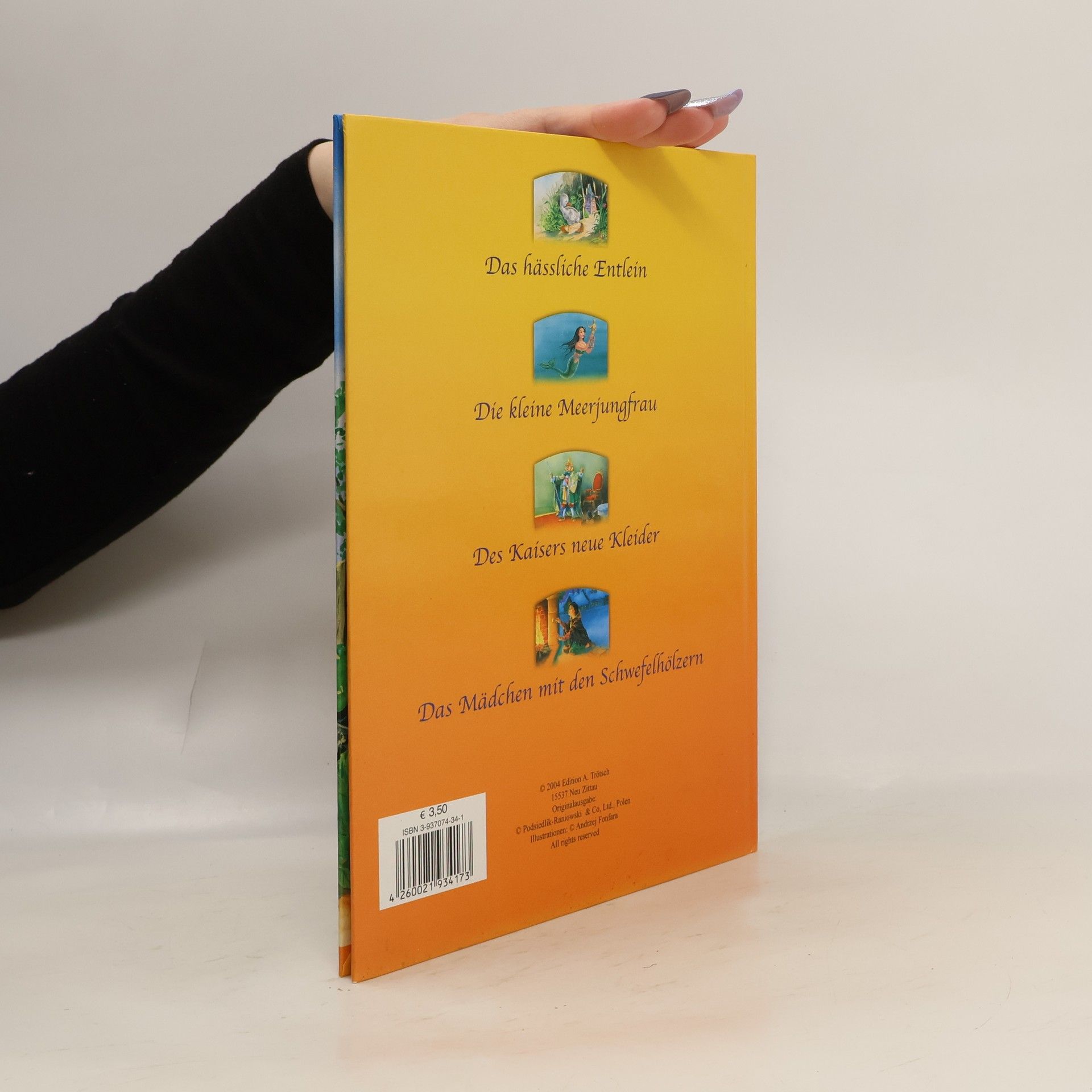 Ein Sammelband mit vier bekannten Märchen von Hans Christian Andersen, jedes Märchen auf 8 Seiten, durchgehend farbig illustriert.