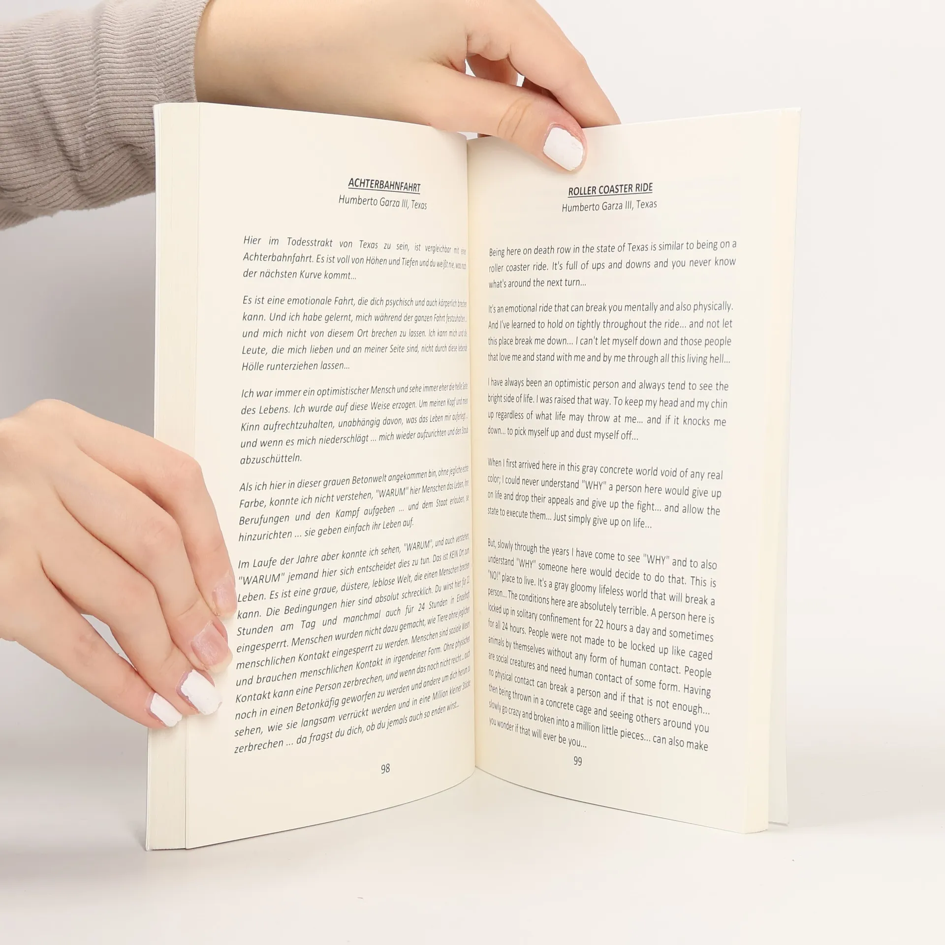 Herausgeberinfo: Der 16. Welttag gegen die Todesstrafe, der von der World Coalition Against the Death Penalty (WCADP) ins Leben gerufen wurde und jährlich am 10. Oktober begangen wird, widmete sich 2018 unter der Devise "Menschenwürde für alle" den Lebensbedingungen in Todestrakten. Anlässlich dessen hat die Initiative gegen die Todesstrafe e.V. Erfahrungsberichte von zum Tode verurteilten Gefangenen in den USA gesammelt, um der Außenwelt Innenansichten von Menschen und Orten zu geben, über die zwar viel gesprochen wird, aber doch wenig bekannt ist. Die Initiative gegen die Todesstrafe e.V. hat rund 300 Todestraktinsassen in den USA nach Beiträgen (Gedichten, Berichten, Kurzgeschichten, Zeichnungen, Gemälden) gefragt, die sich im weitesten Sinne mit ihrem Leben in der Todeszelle beschäftigen sollten. 40 Häftlinge aus neun US-Bundesstaaten schickten dem Verein über 100 Kreationen, die in einer eigens dafür erstellten Website veröffentlicht wurden. Eine Auswahl der eindrucksvollsten Beiträge ist in diesem Buch zusammengefasst und sowohl im englischen Original als auch in deutscher Übersetzung enthalten. Dabei ist nicht nur die Vielfalt der äußeren Form bemerkenswert, sondern vor allem auch die inhaltliche Bandbreite, die von Depression und Verzweiflung auf der einen bis zu Versöhnung und tiefem inneren Frieden auf der anderen Seite reicht. Die Beiträge zeigen eindrücklich die Menschen hinter den Straftätern. Die Initiative gegen die Todesstrafe e.V. ist sich dessen bewusst, dass ein großer Teil der zum Tod verurteilten Häftlinge unermesslich schlimme Verbrechen begangen hat, und will diese in keiner Weise verharmlosen. Jedoch ist seine Straftat nicht das einzige, was die Person eines Todestraktinsassen ausmacht - da gibt es weit mehr zu entdecken, wie dieses Buch belegt.