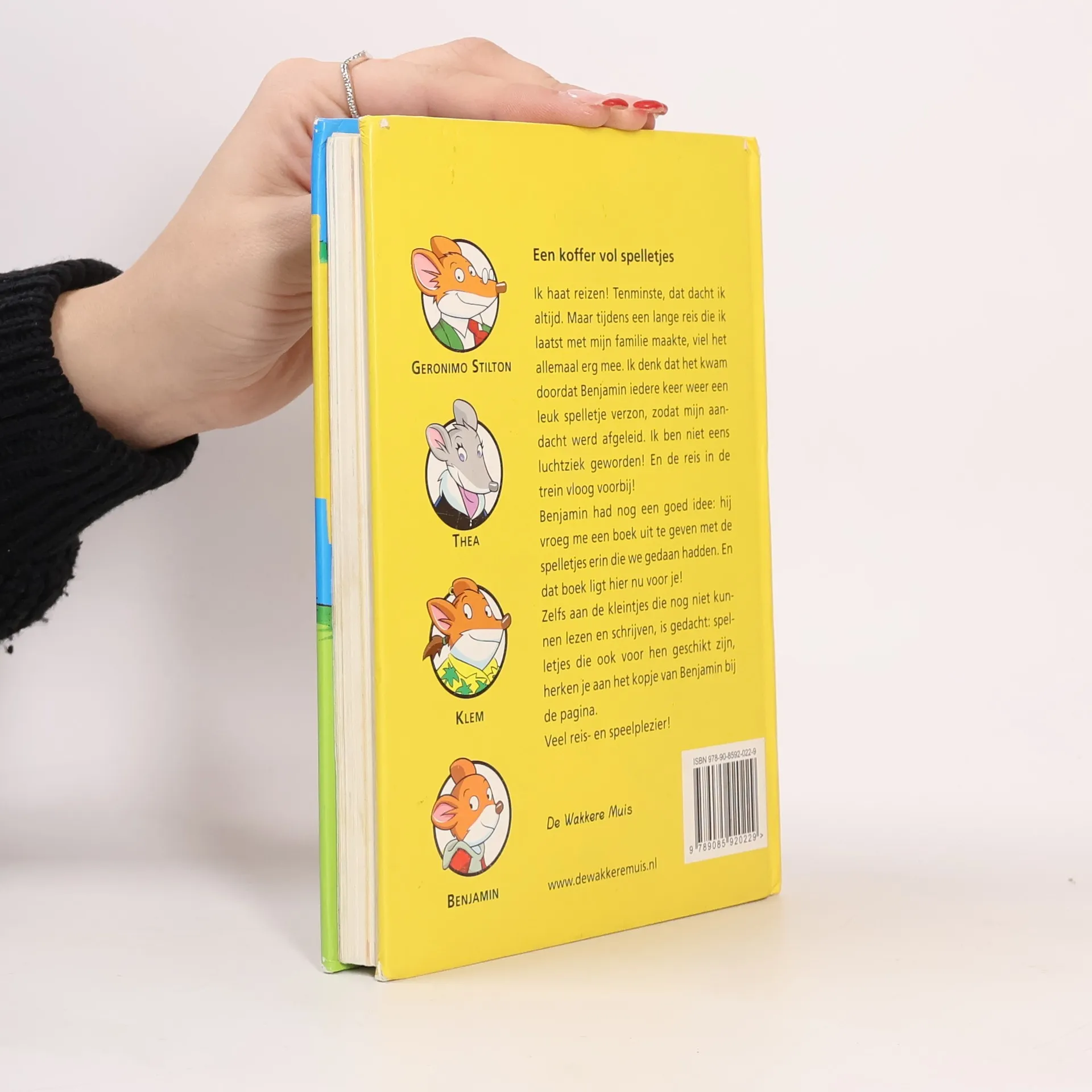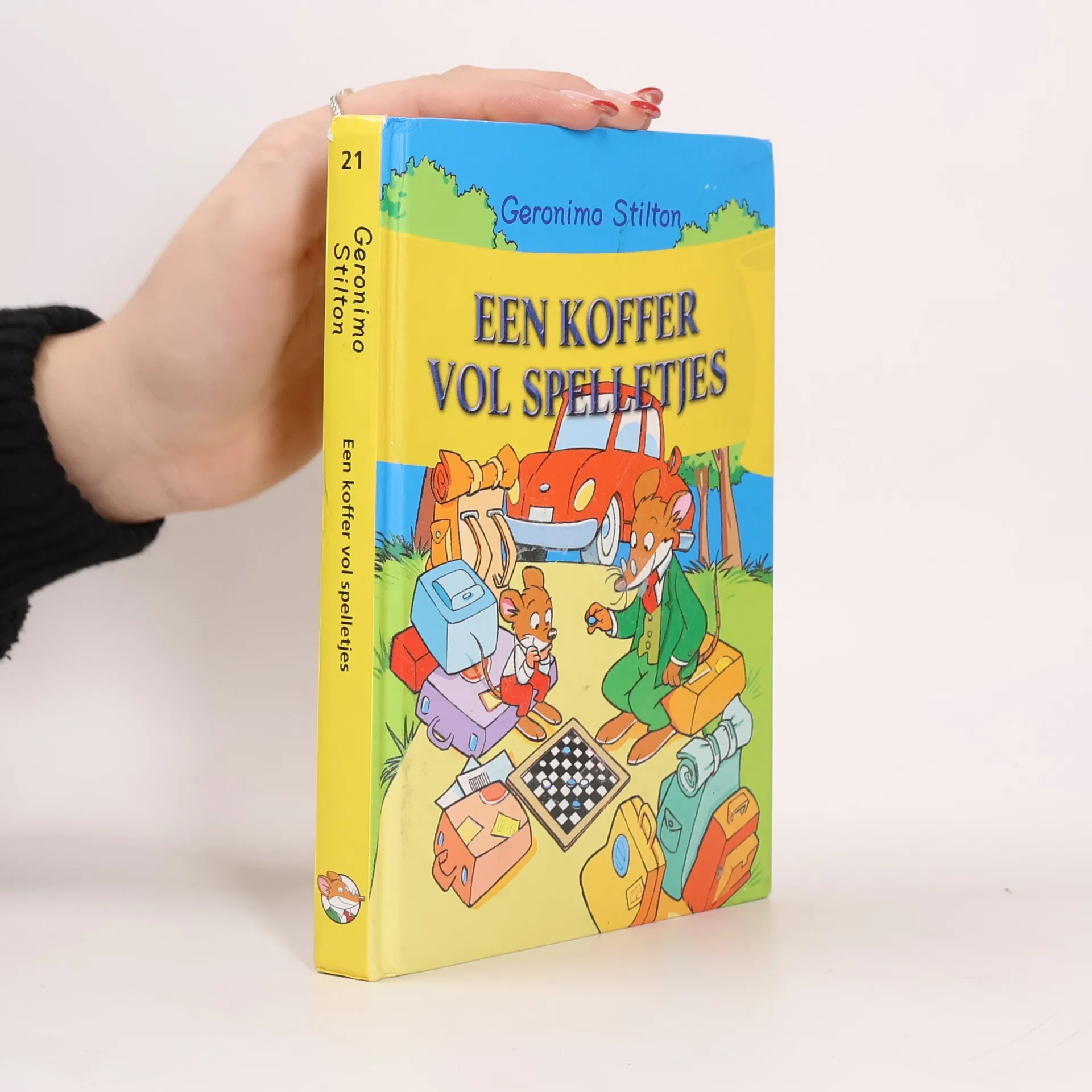 Het was de schuld van de belastingsdienst dat Stilton weer op vakantie moest. Ja, dat klinkt raar he? Maar toch is het zo. Zonder de belastingsdienst had hij nooit acht chocoladekoekjes gegeten en daar is het allemaal mee begonnen... Gelukkig was Benjamin er bij, want het was een gi-ga-lange reis met alle vervoermiddelen die je maar bedenken kan. Samen met zijn lievelingsneefje Benjamin speelde hij wel honderd spelletjes. Het was zo leuk, dat Benjamin helemaal geen tijd had om zich te vervelen en zo vergat Geronimo voor het eerst zijn hoogtevrees, vliegangst, claustrofobie en pleinangst. Al die spelletjes staan in dit boek. Dus als jullie op reis gaan en je moet bijvoorbeeld lang wachten op het vliegveld of lang in de auto zitten, pak dan dit boek en de tijd vliegt voorbij! Maar ook als je thuis bent, kan je urenlang plezier beleven met dit spelletjesboek.