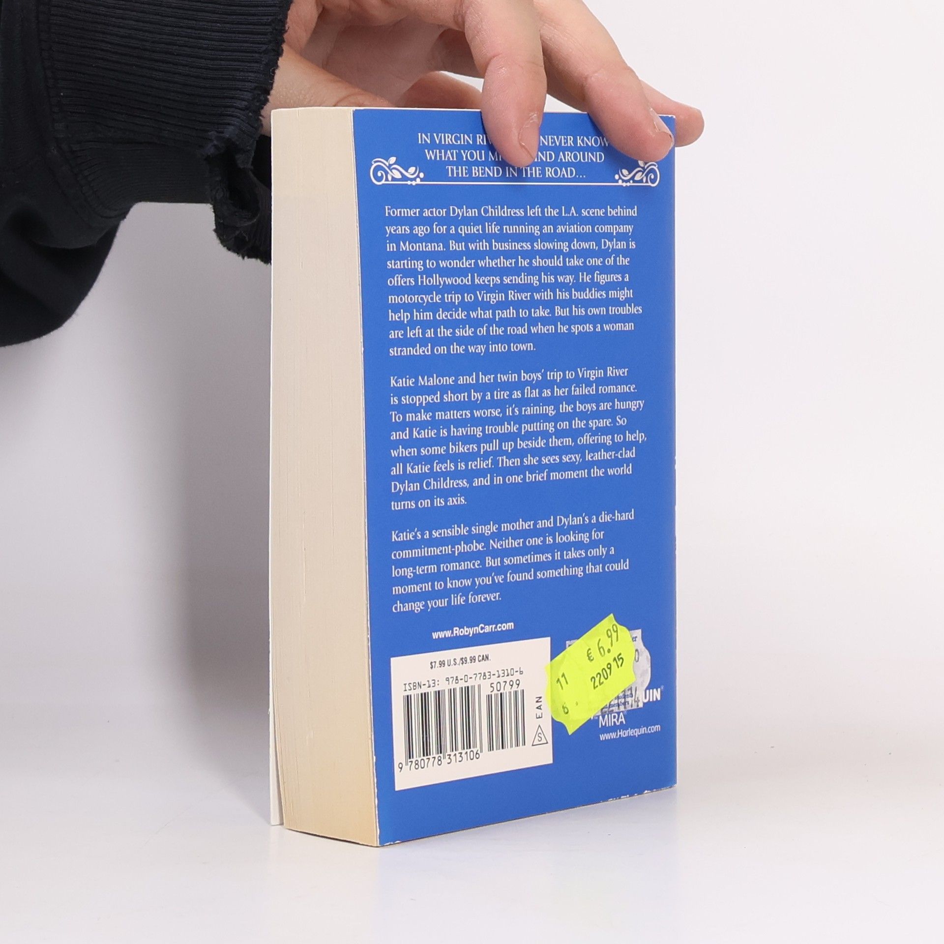In Virgin River, you never know what you might find around the bend in the road... Former actor Dylan Childress left the L.A. scene behind years ago for a quiet life running an aviation company in Montana. But with business slowing down, Dylan is starting to wonder whether he should take one of the offers Hollywood keeps sending his way. He figures a motorcycle trip to Virgin River with his buddies might help him decide what path to take. But his own troubles are left at the side of the road when he spots a woman stranded on the way into town. Katie Malone and her twin boys' trip to Virgin River is stopped short by a tire as flat as her failed romance. To make matters worse, it's raining, the boys are hungry and Katie is having trouble putting on the spare. So when some bikers pull up beside them, offering to help, all Katie feels is relief. Then she sees sexy, leather-clad Dylan Childress, and in one brief moment the world turns on its axis. Katie's a sensible single mother and Dylan's a die-hard commitment-phobe. Neither one is looking for long-term romance. But sometimes it takes only a moment to know you've found something that could change your life forever.