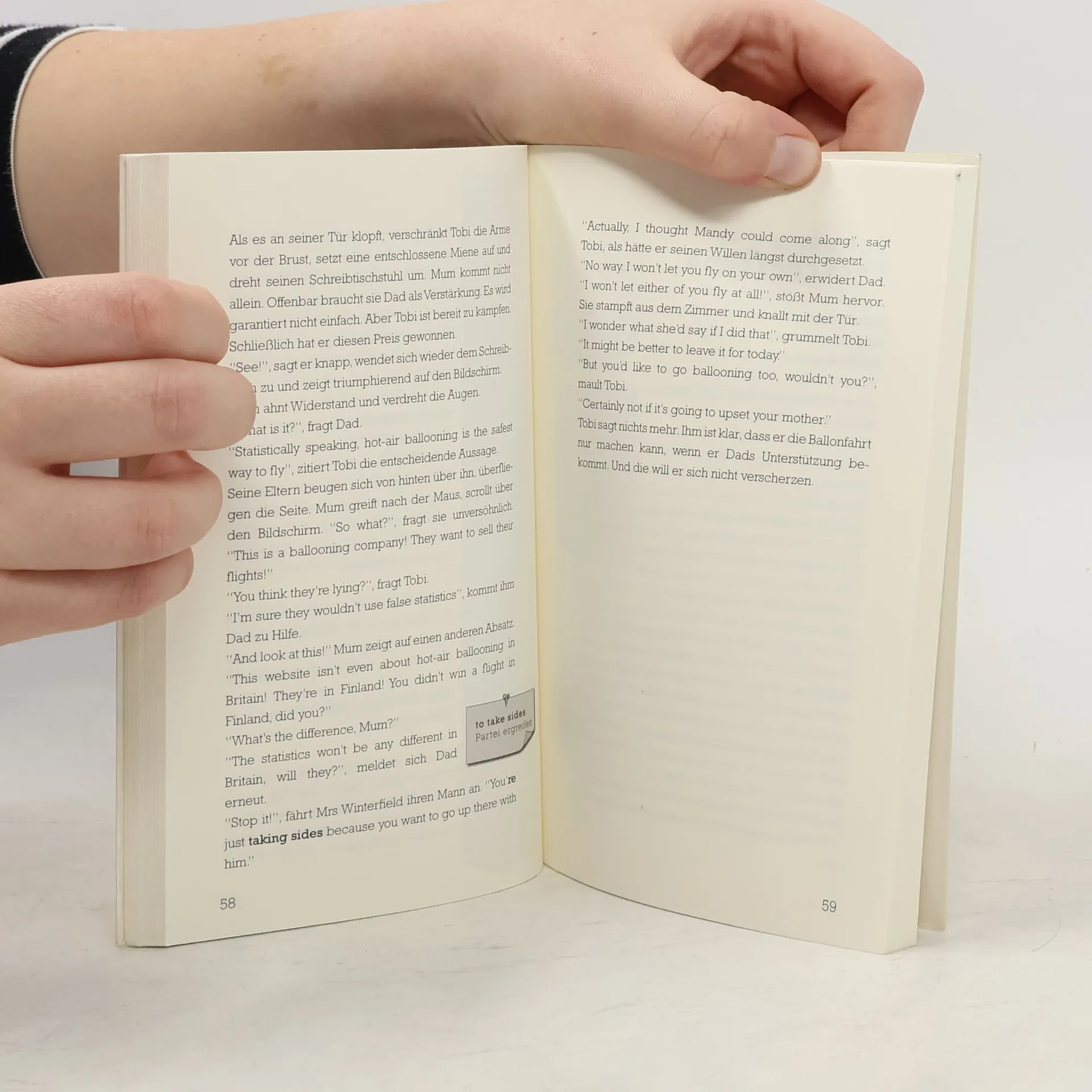 Eine Abenteuer-Story. Die Handlung ist in Deutsch, die Dialoge in Englisch - so versteht man die Handlung und lernt Englisch ganz nebenbei. Schwierige Wörter werden erklärt, die Vokabelangaben orientieren sich dabei an den wichtigsten Schulbüchern der 5. und 6. Klasse. INHALT: Tobi hat drei Jahre lang die Deutsche Schule London besucht. Nach Ende des Schuljahres werden er und seine Eltern wieder zurück nach Deutschland ziehen. BeimJahresabschlussfest gewinnt Tobi bei der großen Tombola eine Ballonfahrt für drei Personen. Was für ein Abschiedsgeschenk! Aber Tobis Mutter will auf keinen Fall mitfahren, sie bleibt lieber am Boden. Tobi lädt Mandy ein, die in der Nachbarschaft wohnt. Außerdem ist natürlich noch der Pilot mit von der Partie, der den Ballon steuern wird. Zunächst klappt alles wie am Schnürchen - allerdings nur bis zur Landung. Hier geht es nicht um Grammatik pauken und ewig lange Vokabellisten. Hier geht es um Abenteuer und Thriller! Eine Abenteuerstory in der Sprachkombi Englisch und Deutsch aus der Reihe „Boy Zone": spannende Storys von Jugendbuchautoren geschriebenauf Deutsch erzählte Geschichten mit englischen Dialogenkurze Kapitel für den schnellen Erfolgkeine langen Vokabellisten, sondern kleine Übersetzungsboxen, wenn mal ein unbekanntes Wort auftaucht