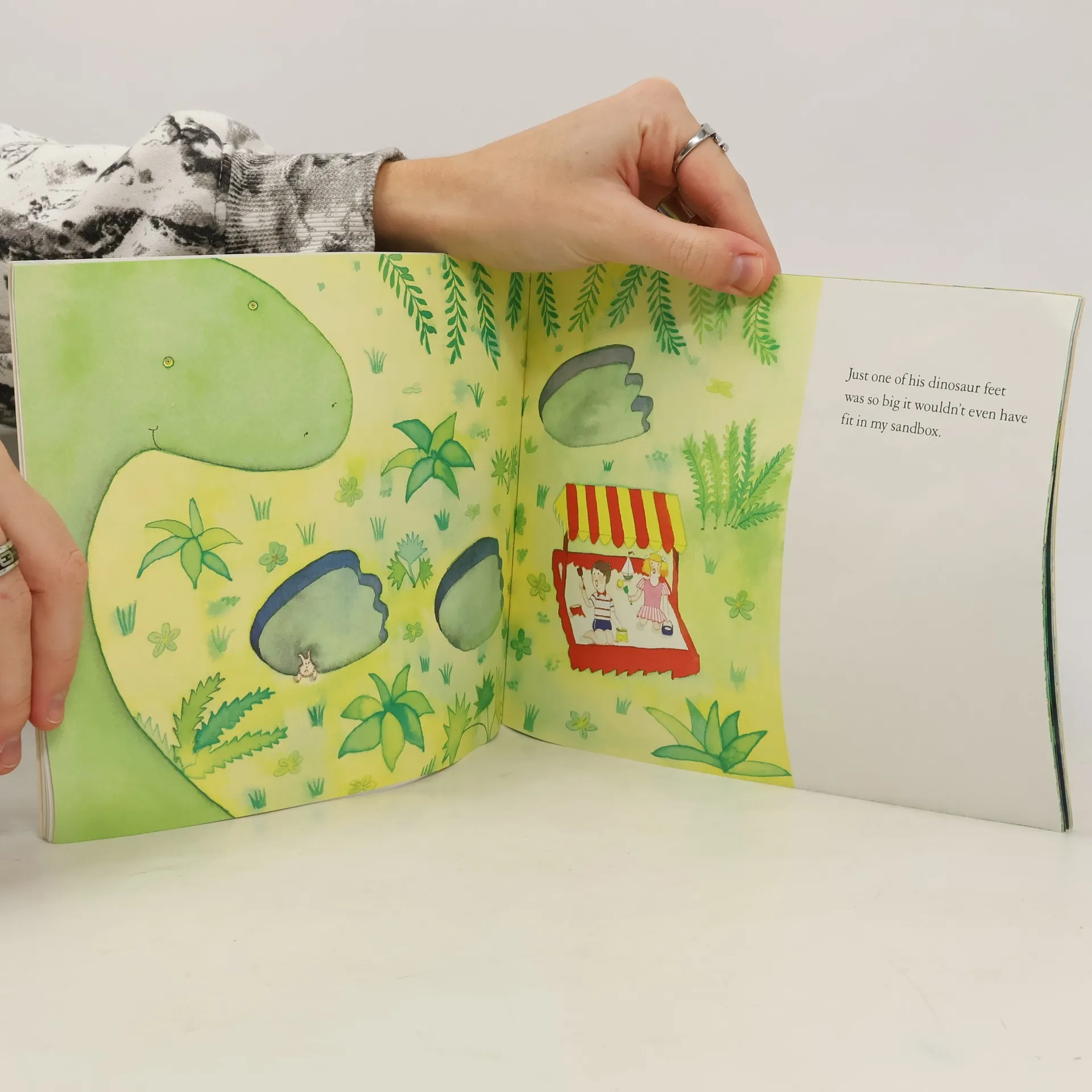A young boy imagines what it was like long ago when a dinosaur lived in his back yard.