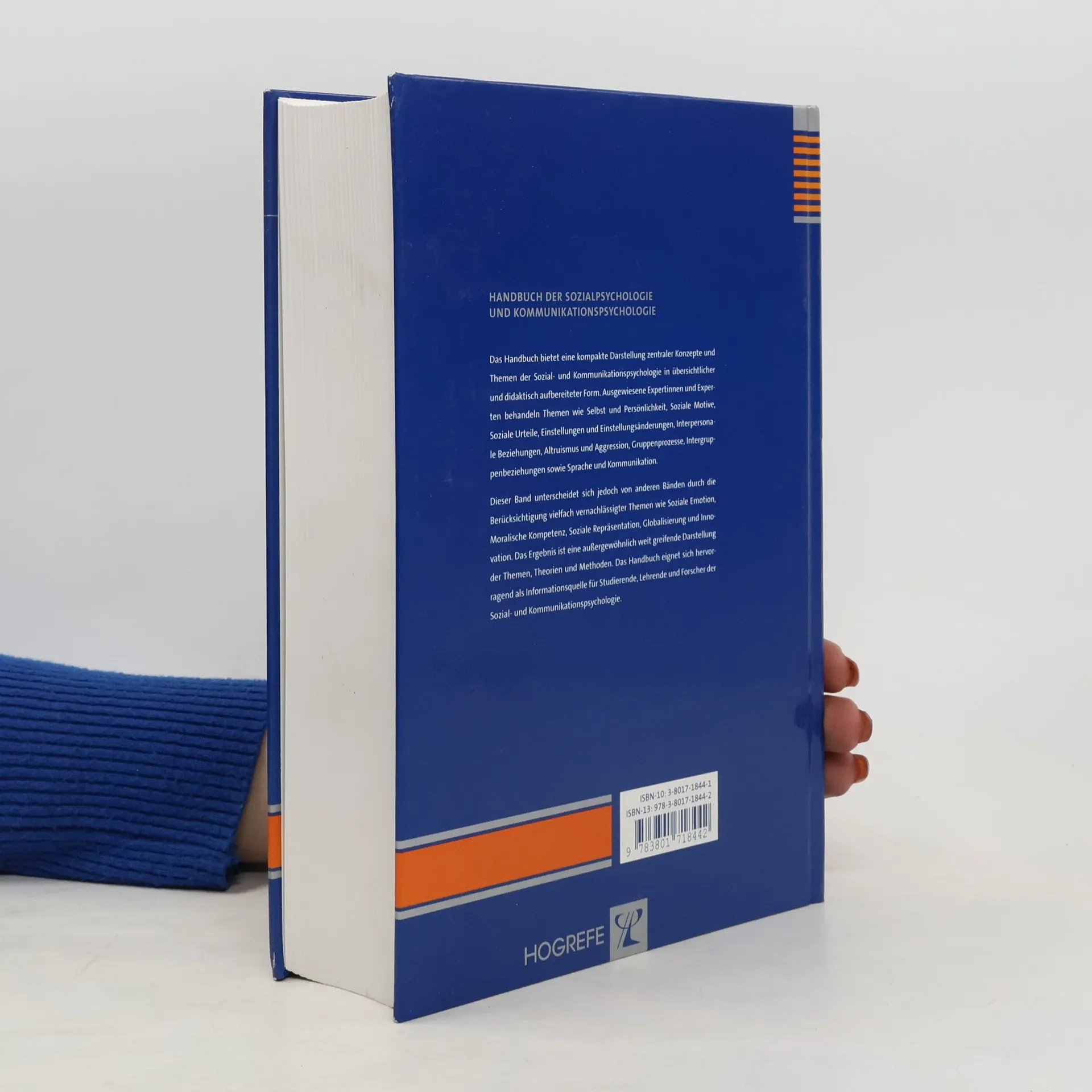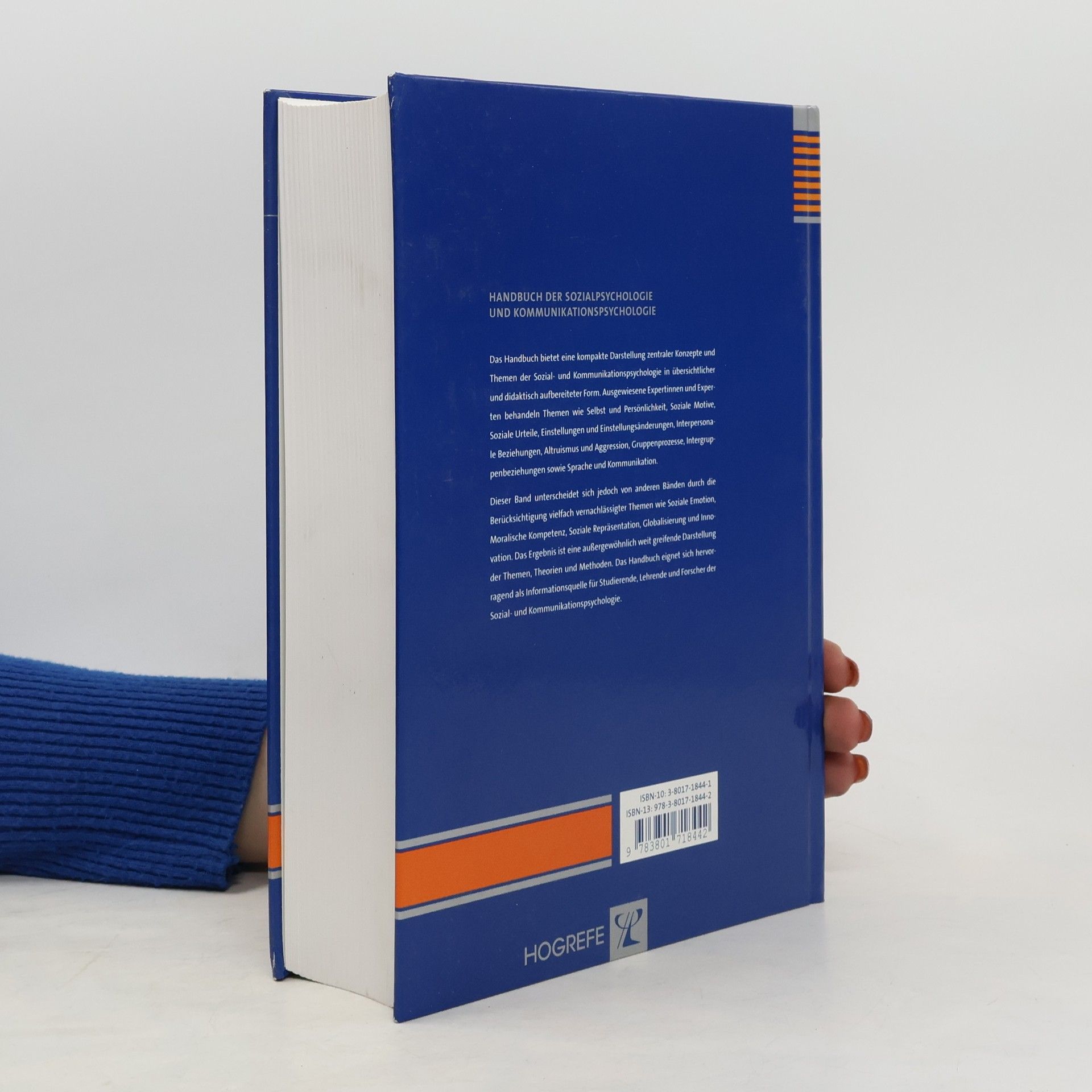 Das Handbuch bietet eine kompakte Darstellung zentraler Konzepte und Themen der Sozialpsychologie und Kommunikationspsychologie in übersichtlicher und didaktisch aufbereiteter Form. Ausgewiesene Experten behandlen Themen wie Selbst und Persönlichkeit, Soziale Motive, Soziale Urteile, Einstellungen und Einstellungsänderungen, Interpersonale Beziehungen, Altruismus und Aggression, Gruppenprozesse, Intergruppenbeziehungen sowie Sprache und Kommunikation. Dieser Band unterscheidet sich jedoch von anderen Bänden durch die Berücksichtigung vielfach vernachlässigter Themen wie Soziale Emotion, Moralische Kompetenz, Soziale Repräsentation, Globalisierung und Innovation. Das Ergebnis ist eine außergewöhnlich weit greifende Dartstellung der Themen, Theorien und Methoden. Das Handbuch eignet sich hervorragend als Informationsquelle für Studierende, Lehrende und Forscher der Sozial- und Kommunikationspsychologie.