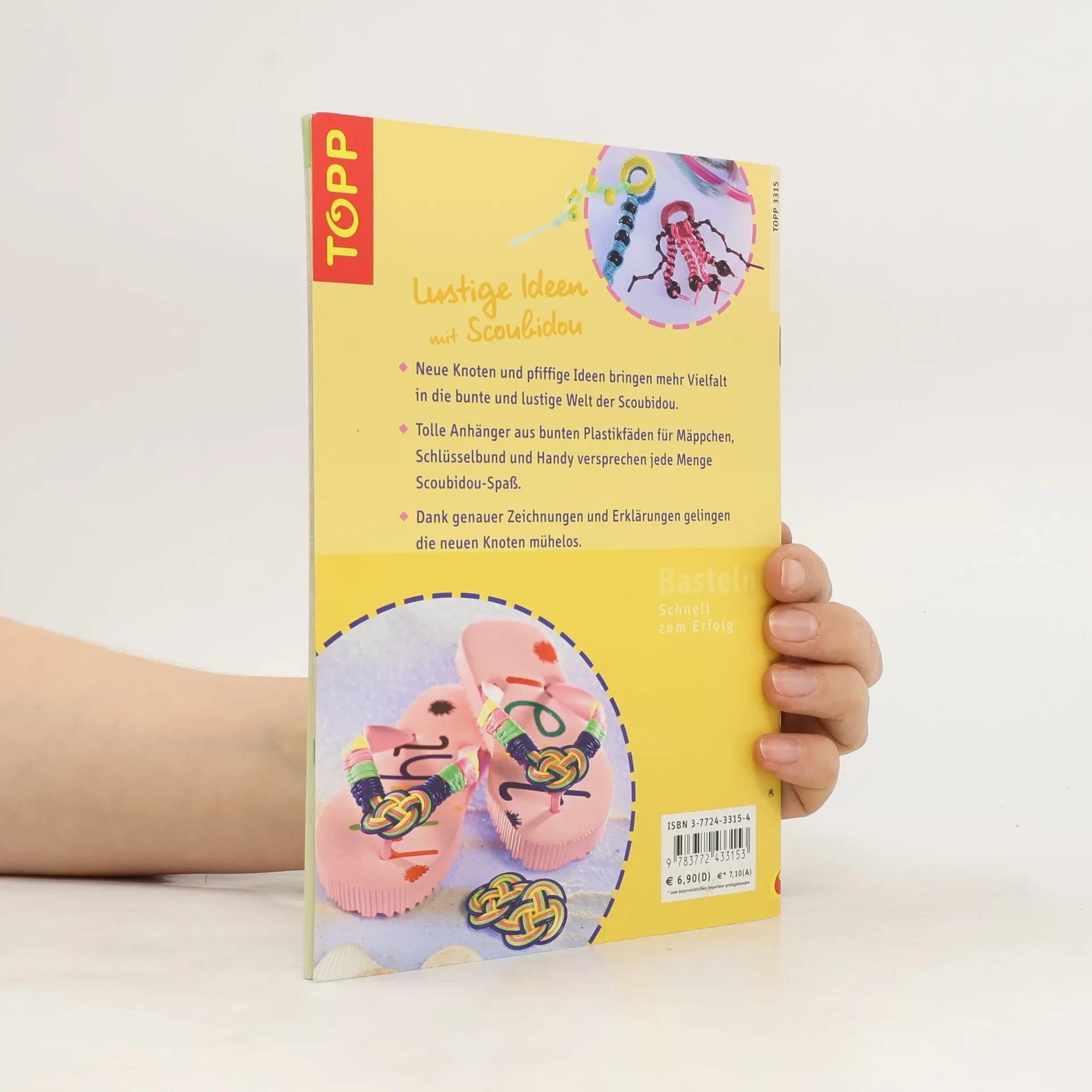 Neue Knoten und pfiffige Ideen bringen mehr Vielfalt in die bunte und lustige Welt der Scoubidou. - Tolle Anhänger aus bunten Plastikfäden für Mäppchen, Schlüsselbund und Handy versprechen jede Menge Scoubidou-Spaß.§§Dank genauer Zeichnungen und Erklärungen gelingen die neuen Knoten mühelos.