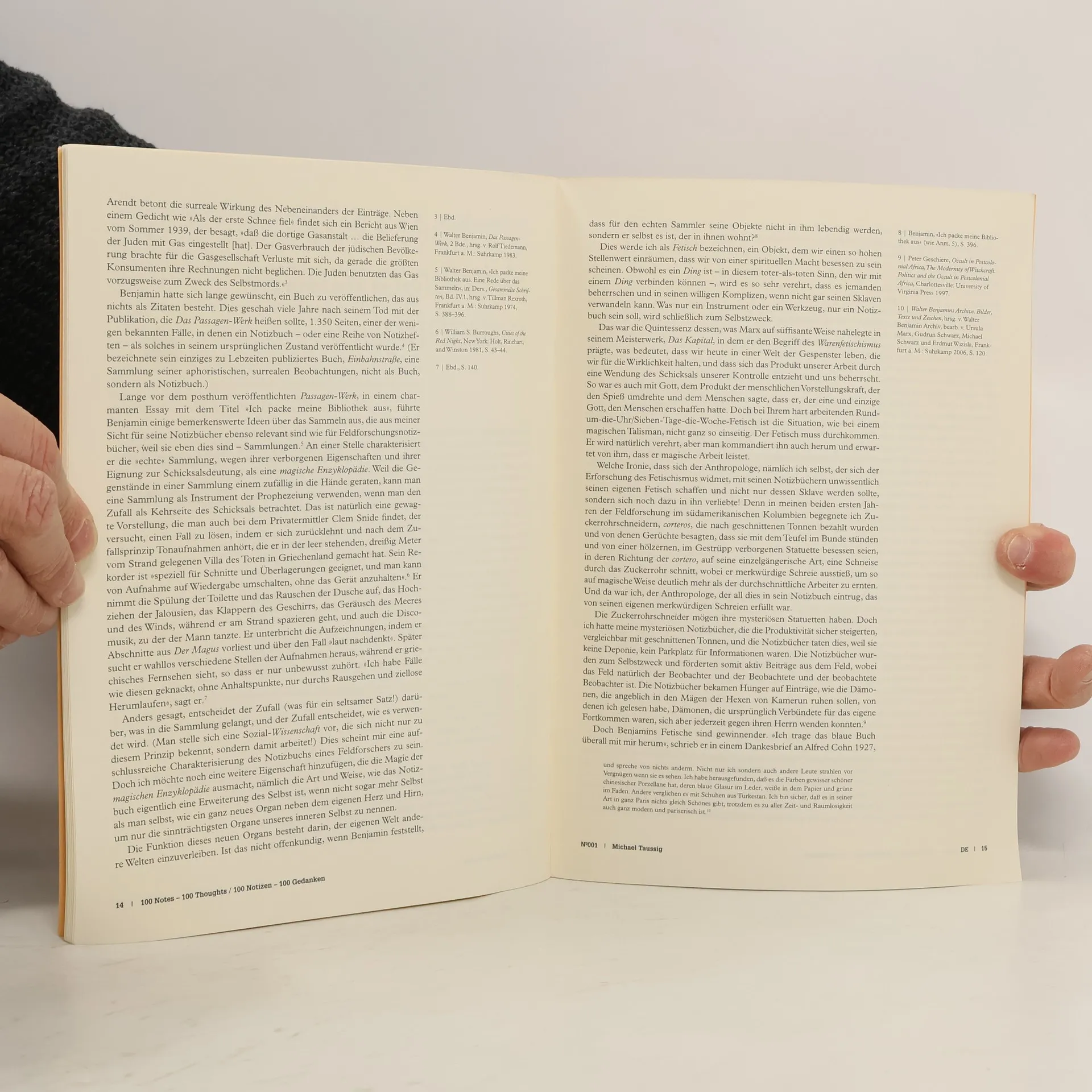 What is it that makes notebooks so fascinating? Anthropologist Michael Taussig, for whom fieldwork notebooks are an indispensable tool, discusses this very question. A starting point of his investigation is Walter Benjamin, who obsessively filled his own notebooks and was intrigued by their materiality. Roland Barthes, Le Corbusier, and Joan Didion are some of the many other notorious note takers that Taussig visits so as to crystallize his ideas of what a notebook really is. Far more than a mere “thing,” Taussig argues that a notebook develops a life of its own, a life, which is often fed by what hasn’t been written down and other externalities. In the end, this history can even take possession of its possessor by transforming a notebook into a magical object, a fetish.