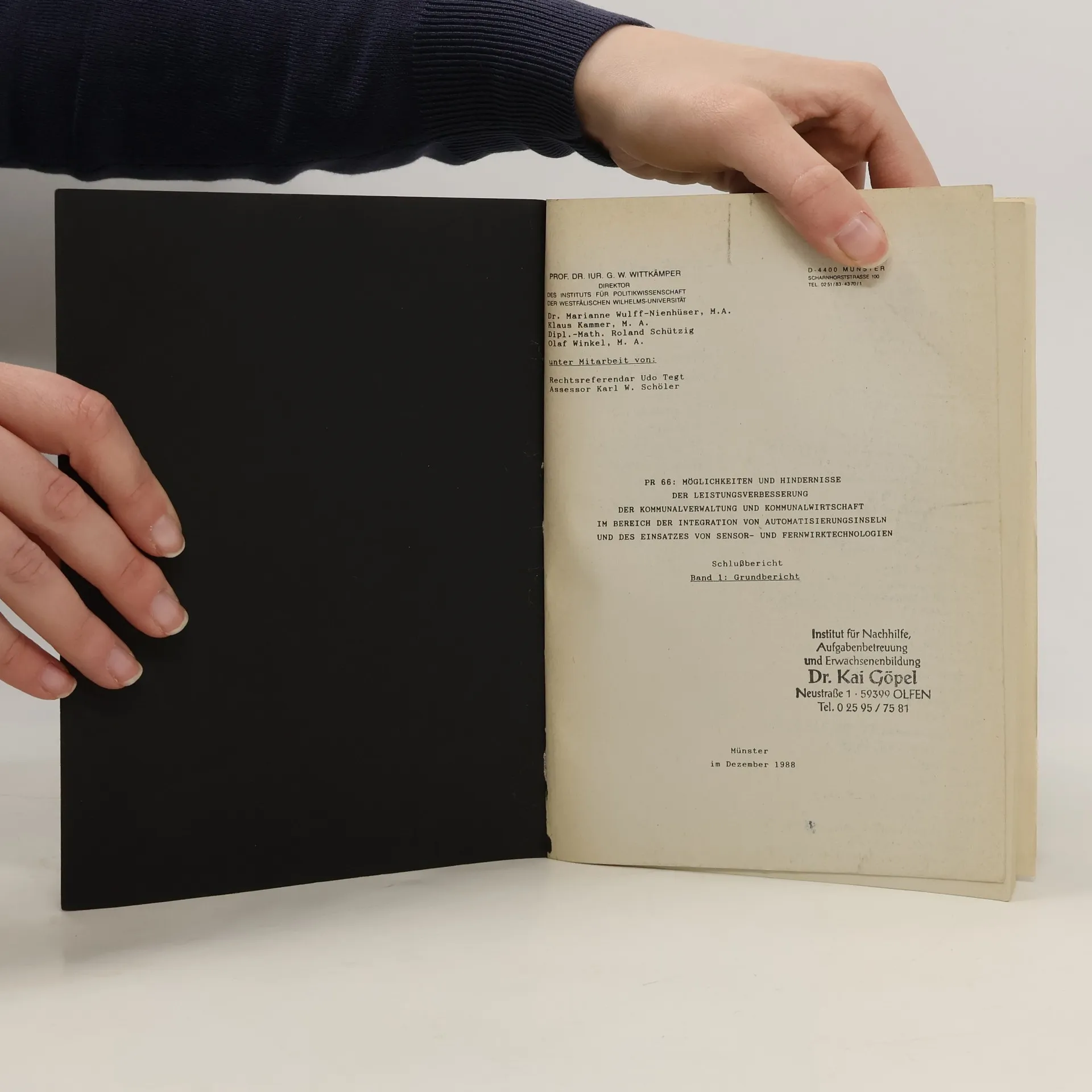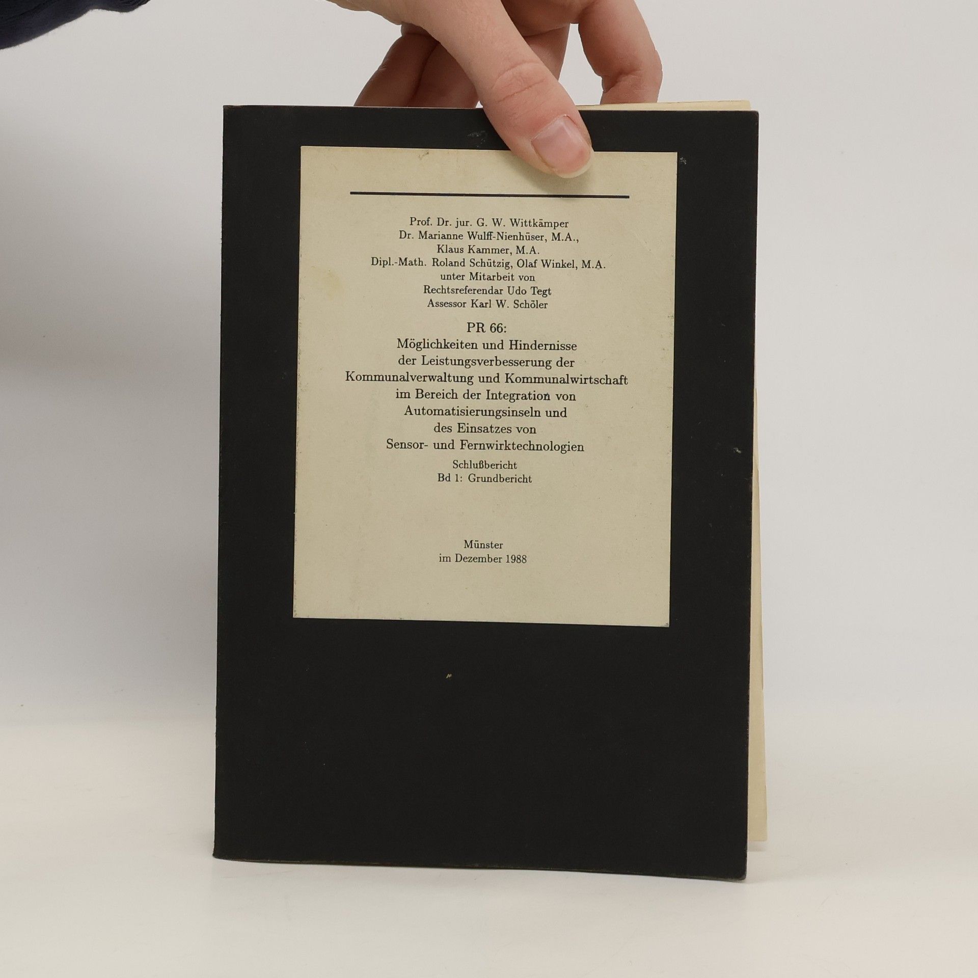 Möglichkeiten und Hindernisse der Leistungsverbesserung der Kommunalverwaltung und Kommunalwirtschaft im Bereich der Integration von Automatisierungsinseln und des Einsatzes von Sensor- und Fernwirktechnologien 1, G. W. Wittkämper