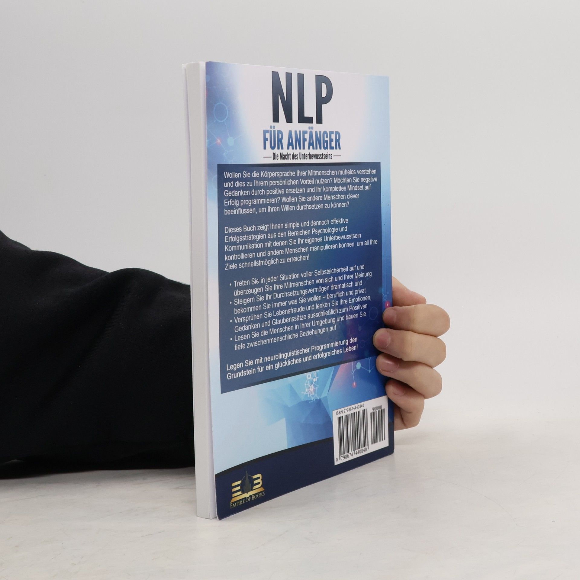 Maximal erfolgreich werden mit NLP - Bekommen Sie durch simple Manipulationstechniken immer was Sie wollen Wollen Sie die Körpersprache Ihrer Mitmenschen mühelos verstehen und dies zu Ihrem persönlichen Vorteil nutzen? Möchten Sie negative Gedanken durch positive ersetzen und Ihr komplettes Mindset auf Erfolg programmieren? Wollen Sie andere Menschen clever beeinflussen, um Ihren Willen durchzusetzen? Was nach Fähigkeiten eines Mentalisten klingt, kann schon bald zu Ihrem Repertoire gehören! Denn dieses Buch zeigt Ihnen simple und dennoch effektive Erfolgsstrategien aus den Bereichen Psychologie und Kommunikation mit denen Sie Ihr eigenes Unterbewusstsein kontrollieren und andere Menschen manipulieren können, um all Ihre Ziele schnellstmöglich zu erreichen! Gestalten Sie Ihr neues Leben durch neurolinguistische Programmierung Treten Sie in jeder Situation voller Selbstsicherheit auf und überzeugen Sie Ihre Mitmenschen von sich und Ihrer Meinung Steigern Sie Ihr Durchsetzungsvermögen dramatisch und bekommen Sie immer, was Sie wollen - beruflich und privat Versprühen Sie Lebensfreude, lenken Sie Ihre Emotionen, Gedanken und Glaubenssätze ausschließlich zum Positiven und werden Sie zu einer unfassbar beliebten Person, mit der sich jeder gerne umgeben möchte Lesen Sie die Menschen in Ihrer Umgebung und bauen Sie tiefe zwischenmenschliche Beziehungen auf Dieser wissenschaftlich fundierte Ratgeber zeigt Ihnen nicht nur, wie sie spielend leicht Ängste überwinden, Ihr Mindset shiften und mit Ihrer Körpersprache maximales Selbstbewusstsein ausstrahlen. Lernen Sie auch exklusive und wirkungsvolle Manipulationstechniken von Top-Experten, mit denen Sie jedes Gespräch in die von Ihnen gewünschte Richtung lenken und das Verhalten anderer Menschen zu Ihrem Vorteil beeinflussen können. Legen Sie jetzt den Grundstein für ein glückliches und erfolgreiches Leben und sichern Sie sich noch heute dieses Must-Have zum Thema NLP.