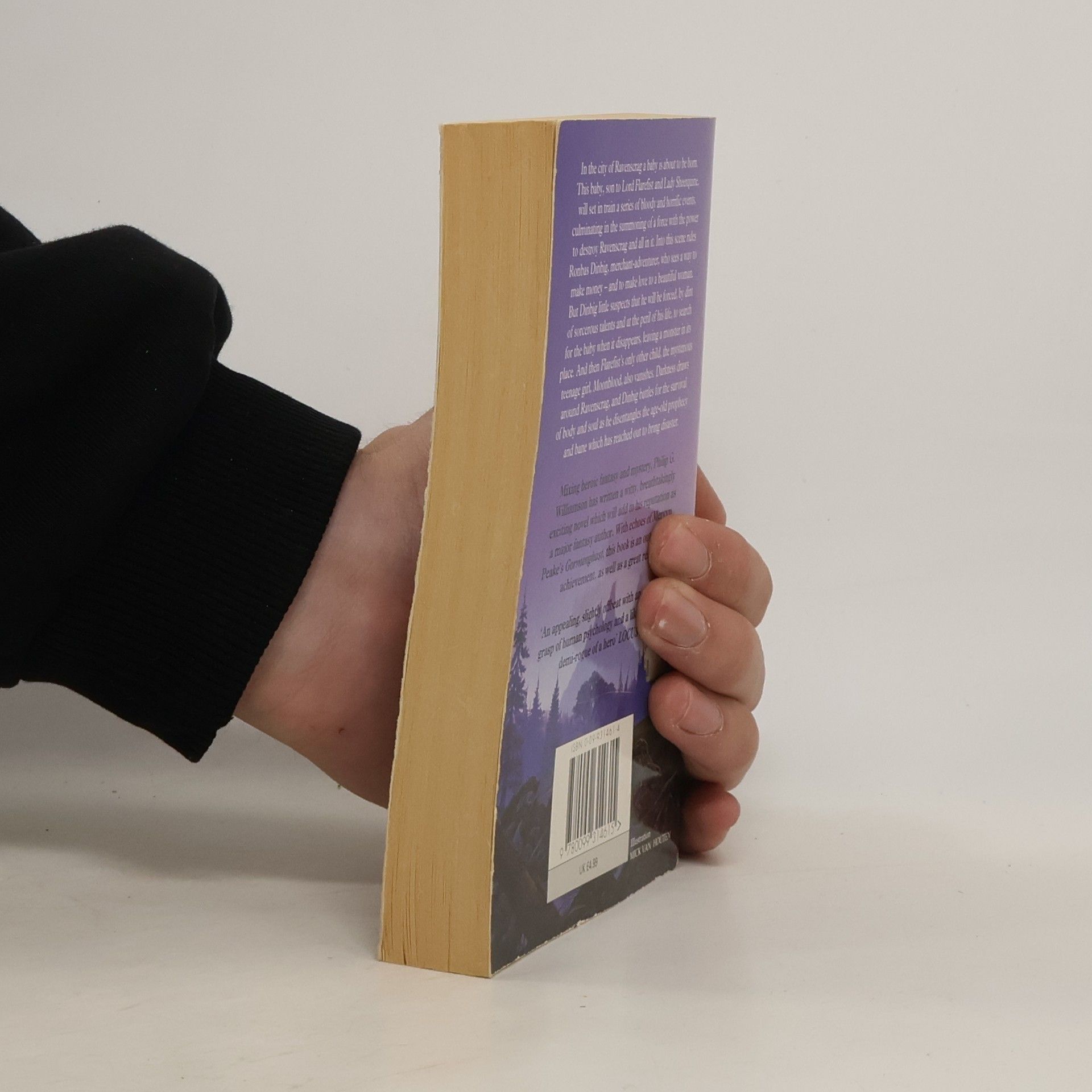 In the city of Ravenscrag a baby is about to be born. This baby, son to Lord Flarefist and Lady Sheerquine, will set in train a series of bloody and horrific events, culminating in the summoning of a force with the power to destroy Ravenscrag and all in it. Into this scene rides Ronbas Dinbig, merchant-adventurer, who sees a way to make money - and to make love to a beautiful woman. But Dinbig little suspects that he will be forced, by dint of sorcerous talents and at the peril of his life, to search for the baby when it disappears, leaving a monster in its place. And then Flarefist's only other child, the mysterious teenage girl, Moonblood, also vanishes. Darkness draws around Ravenscrag, and Dinbig battles for the survival of body and soul as he disentangles the age-old prophecy and bane which has reached out to bring disaster.