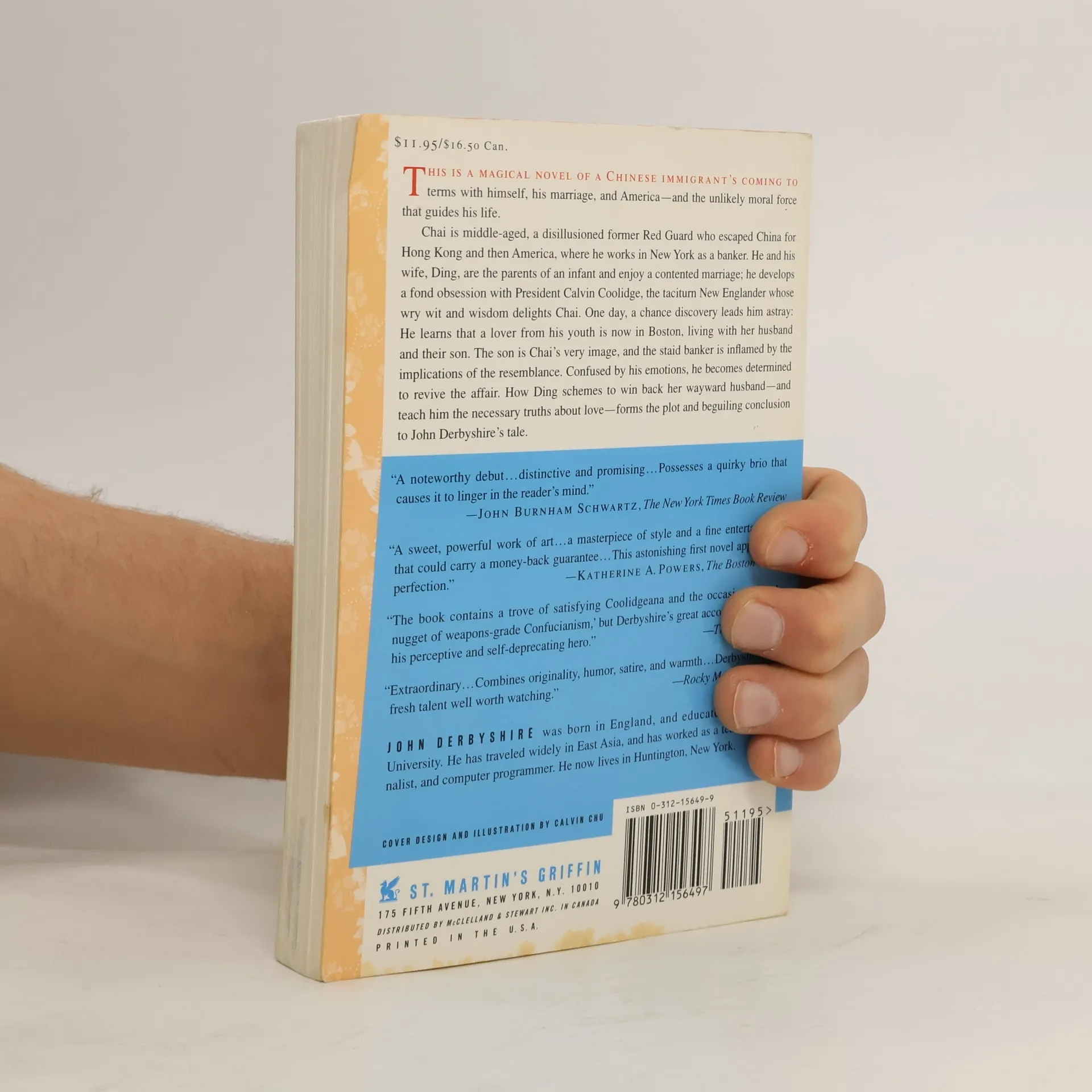 This is a magical novel of a Chinese immigrant's coming to terms with himself, his marriage, and America--and the unlikely moral force that guides his life.Chai is middle-aged, a disillusioned formed Red Guard who escaped China for Hong Kong and then America, where he works in New York as a banker. He and his wife, Ding, are the parents of an infant and enjoy a contented marriage; he develops a fond obsession with President Calvin Coolidge, the taciturn New Englander whose wry wit and wisdom delights Chai. One day, a chance discovery leads him He learns that a lover from his youth is now in Boston, living with her husband and their son. The son is Chai's very image, and the staid banker is inflamed by the implications of the resemblance. Confused by his emotions, he becomes determined to revive the affair. How Ding schemes to win back her wayward husband--and teach him the necessary truths about love--forms the plot and beguiling conclusion to John Derbyshire's tale.