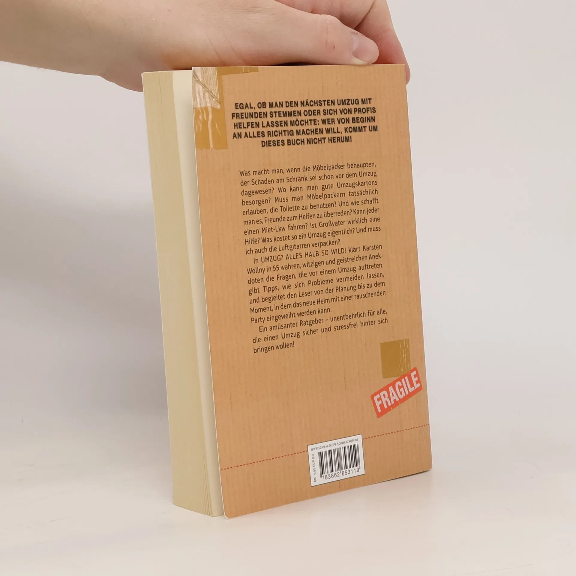 Karsten Wollny, seit über 20 Jahren Möbelpacker, beschreibt in 55 unterhaltsamen Anekdoten aus seinem Leben, was bei einem Umzug alles schiefgehen kann, und gibt Tipps, wie sich Fehler vermeiden lassen. Als Experte in Sachen Möbeltransport kennt der Autor die Gefahren, die da lauern, und die Möglichkeiten, ihnen auszuweichen, ganz genau. Aber auch für die kleineren Dinge, wie das korrekte Einpacken von Geschirr, die Verpflegung von Helfern, das Besorgen des nötigen Materials oder das Freihalten eines Parkplatzes für den Lkw, hat er die richtigen Ratschläge parat. Beginnend mit der Frage, ob man vielleicht eine Spedition anheuern sollte, bis hin zur Erwägung einer Einweihungsparty folgen die wahren Geschichten und die sich daran anschließenden Tipps dem Ablauf eines Umzugs vom Anfang bis zum Ende. Dieser chronologische Aufbau ermöglicht es dem Leser, den gerade benötigten Tipp schnell zu finden. Ob jemand seinen Umzug ausschließlich mit Freunden bewältigen oder sich von Profis helfen lassen möchte: Wer von Beginn an alles richtig machen will, kommt um dieses Buch nicht herum.