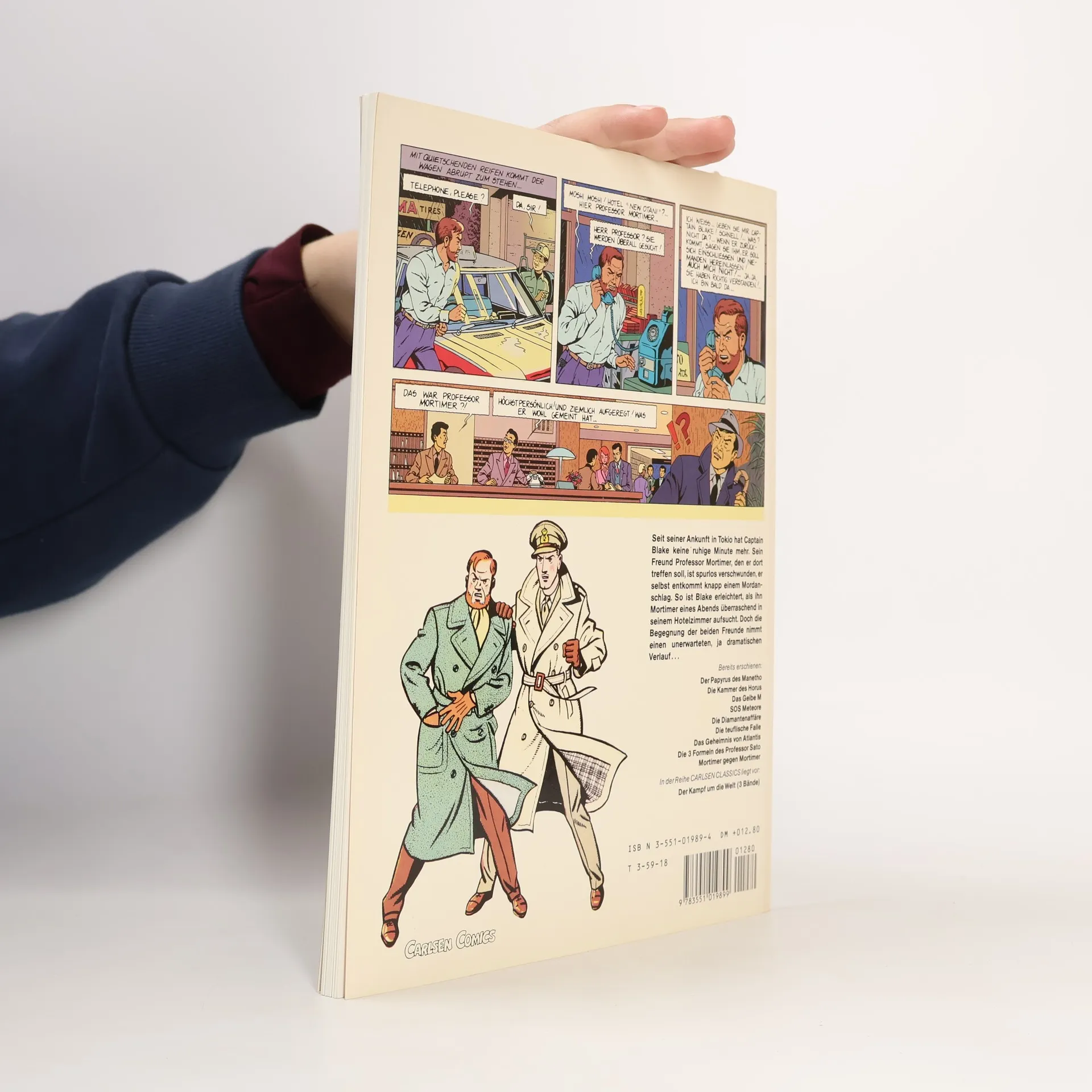 <strong>Original oder Kopie?</strong><br><br>Als Hauptmann Blake seinen Freund Mortimer in Tokio treffen will, muss er feststellen, dass dieser spurlos verschwunden ist. Nachdem er selbst nur knapp einem Mordanschlag entkommen kann, ist Blake erleichtert, als ihn Mortimer eines Abends überraschend in seinem Hotelzimmer aufsucht. Doch die Begegnung der beiden Freunde nimmt plötzlich einen unerwartet dramatischen Verlauf...<br><br>Diese Geschichte ist der zweite Teil eines Doppelabenteuers, das in Band 8 "Die drei Formeln des Professor Sato" seinen Anfang nahm.<br><br><strong>Die Serie "Blake und Mortimer"</strong><br><br>Die Serie um die beiden Briten <strong>Hauptmann Francis Blake</strong> und <strong>Professor Philip Mortimer</strong> gehört zu den besten und erfolgreichsten Reihen für erwachsene Comicleser. Mit dem Charme und dem Duktus der 1950er Jahre entführt sie die Leser in spannende und manchmal mystische Welten.<br><br>Gerade diese Mischung aus realer Geschichte und Elementen aus Mythologie, Science-Fiction und Thriller macht die Faszination aus. Wenn diese Melange von zwei echten britischen Gentlemen dargereicht wird, muss man nur noch Hut und Mantel an der Garderobe abgeben und sich in den bequemen Sessel eines Londoner Clubs sinken lassen, um vollends in die Serie einzutauchen.