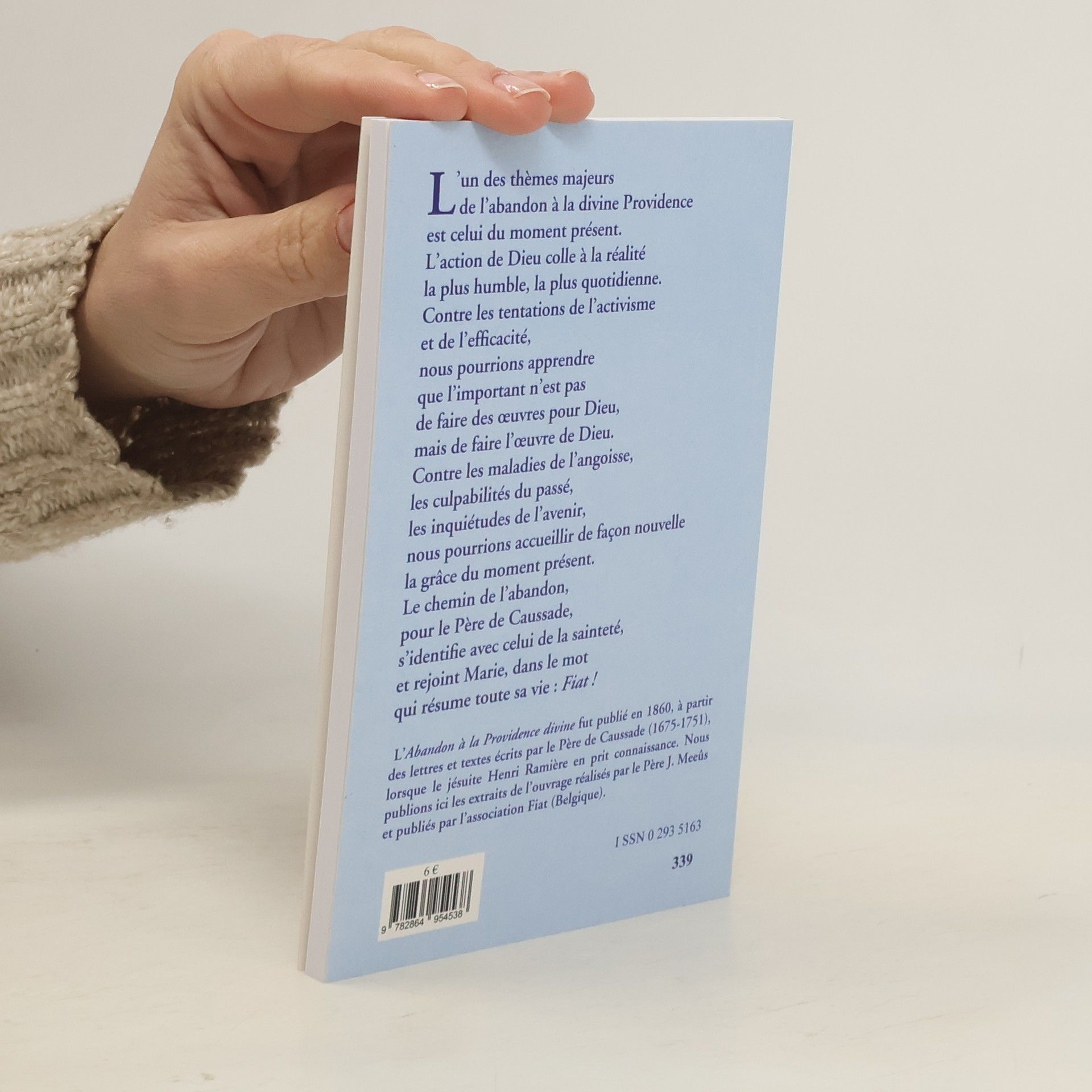 L'un des thèmes majeurs de l'abandon à la divine Providence est celui du moment présent. L'action de Dieu colle à la réalité la plus humble, la plus quotidienne. Contre les tentations de l'activisme et de l'efficacité, nous pourrions apprendre que l'important n'est pas de faire des oeuvres pour Dieu, mais de faire l'oeuvre de Dieu. Contre les maladies de l'angoisse, les culpabilités du passé, les inquiétudes de l'avenir, nous pourrions accueillir de façon nouvelle la grâce du moment présent. Le chemin de l'abandon, pour le Père de Caussade, s'identifie avec celui de la sainteté, et rejoint Marie, dans le mot qui résume toute sa vie : Fiat ! L'Abandon à la Providence Divine fut publié en 1860, à partir des lettres écrites par le Père de Caussade (1675-1751), lorsque le jésuite Henri Ramière en prit connaissance. Nous publions ici les extraits de l'ouvrage réalisé par le Père J. Meeûs et publiés par l'association Fiat.
