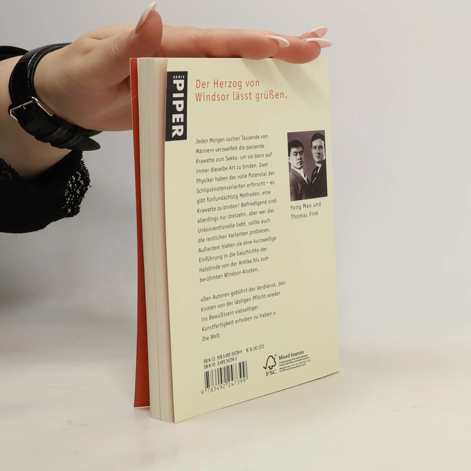 Jeden Morgen stehen Tausende von Männern verzweifelt vor dem Kleiderschrank und suchen die passende Krawatte zum Sakko, um sie dann auf immer dieselbe Art zu binden. Zwei Physiker haben das volle Potenzial der Schlipsknotenvarianten erforscht es gibt fünfundachtzig Methoden, eine Krawatte zu binden! Befriedigend sind allerdings nur dreizehn, aber wer das Unkonventionelle liebt, sollte auch die restlichen Varianten probieren. Außerdem bieten sie eine kurzweilige Einführung in die Geschichte der Halsbinde von der Antike bis zum berühmten Windsor-Knoten.»Den Autoren gebührt das Verdienst, den Knoten von der lästigen Pflicht wieder ins Bewusstsein vielseitiger Kunstfertigkeit erhoben zu haben.«Die Welt
