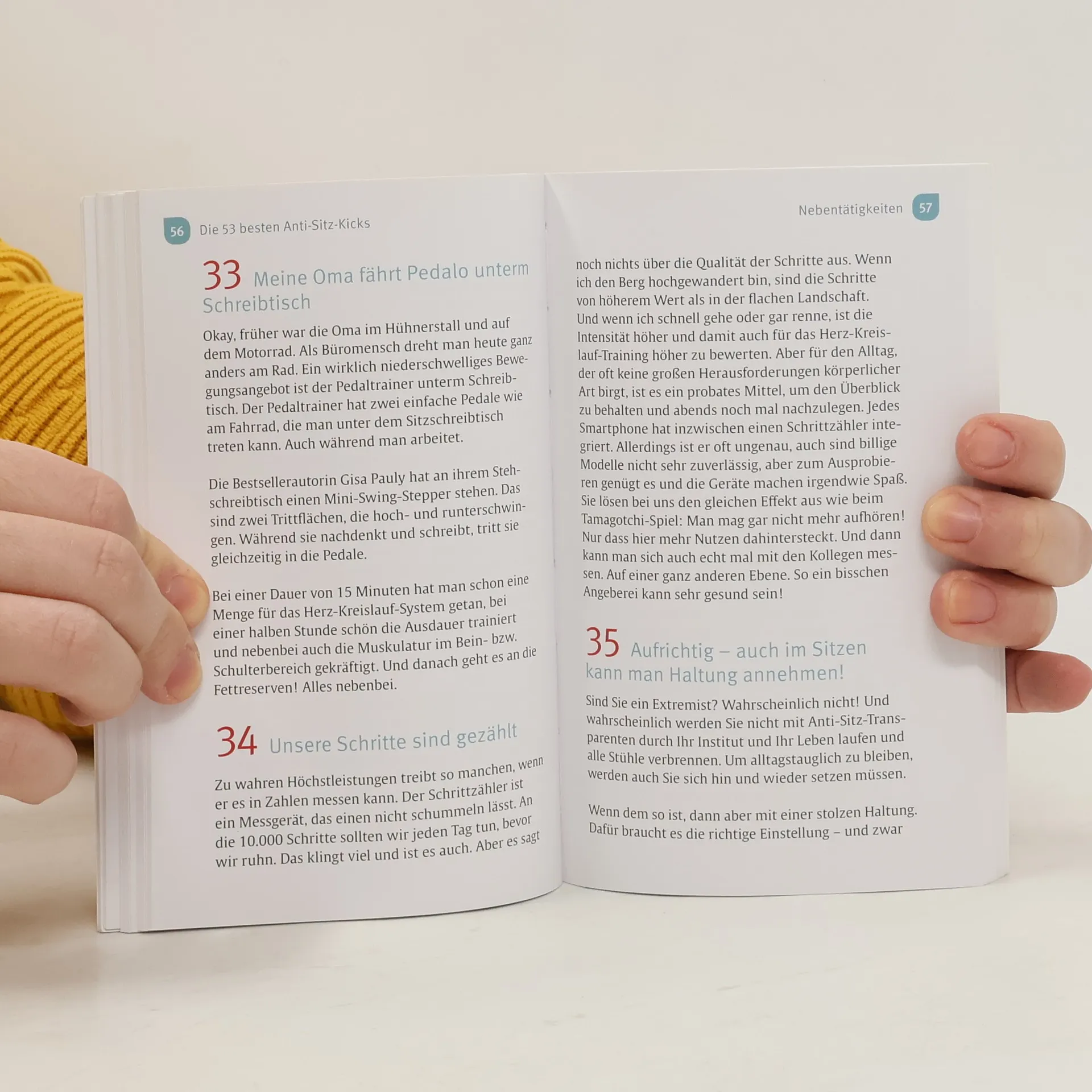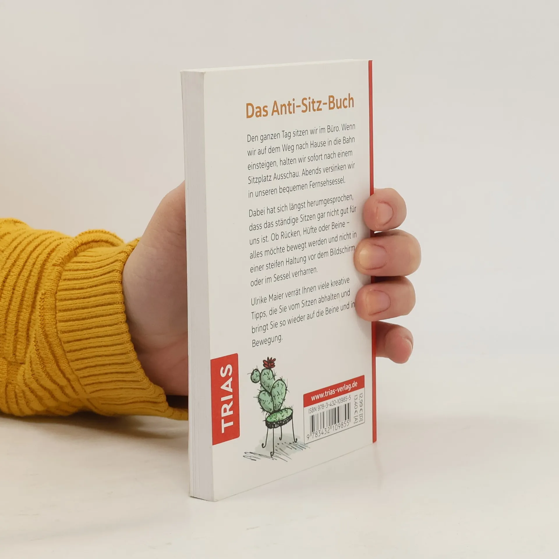 Das Anti-Sitz-BuchDen ganzen Tag sitzen wir im Büro. Wenn wir auf dem Weg nach Hause in die Bahn einsteigen, halten wir sofort nach einem Sitzplatz Ausschau. Abends versinken wir in unseren bequemen Fernsehsessel.Dabei hat sich längst herumgesprochen, dass das ständige Sitzen gar nicht gut für uns ist. Ob Rücken, Hüfte oder Beine - alles möchte bewegt werden und nicht in einer steifen Haltung vor dem Bildschirm oder im Sessel verharren.Ulrike Maier verrät Ihnen viele kreative Tipps, die Sie vom Sitzen abhalten und bringt Sie so wieder auf die Beine und in Bewegung.
