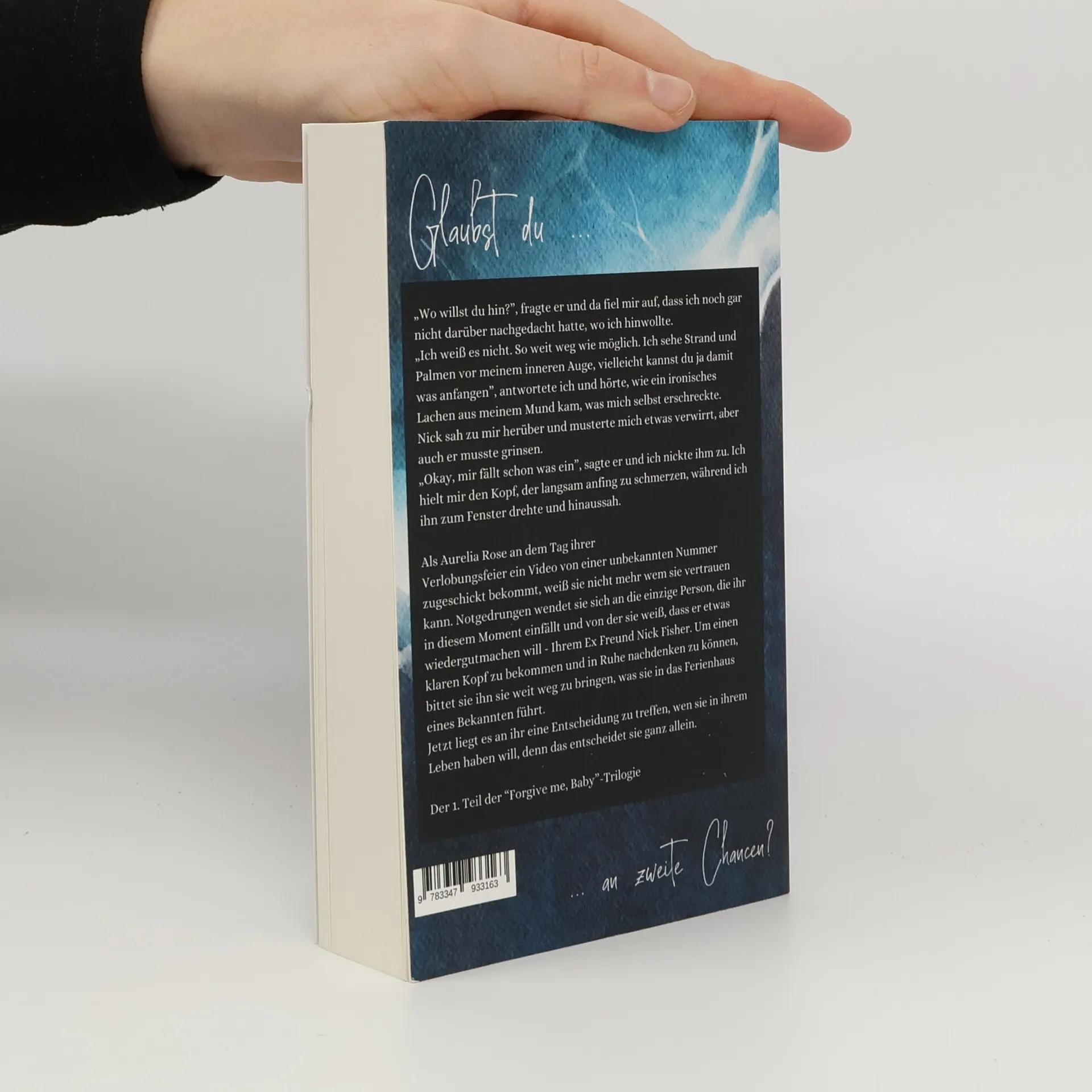 "Wo willst du hin?", fragte er und da fiel mir auf, dass ich noch gar nicht darüber nachgedacht hatte, wo ich hinwollte. "Ich weiß es nicht. So weit weg wie möglich. Ich sehe Strand und Palmen vor meinem inneren Auge, vielleicht kannst du ja damit was anfangen.", antwortete ich und hörte, wie ein ironisches Lachen aus meinem Mund kam, was mich selbst erschreckte. Nick sah zu mir herüber und musterte mich etwas verwirrt, aber auch er musste grinsen. "Okay, mir fällt schon was ein.", sagte er und ich nickte ihm zu. Ich hielt mir den Kopf, der langsam anfing zu schmerzen, während ich ihn zum Fenster drehte und hinaussah. Als Aurelia Rose an dem Tag ihrer Verlobungsfeier ein Video von einer unbekannten Nummer zugeschickt bekommt, weiß sie nicht mehr wem sie vertrauen kann. Notgedrungen wendet sie sich an die einzige Person, die ihr in diesem Moment einfällt und von der sie weiß, dass er etwas wiedergutmachen will - Ihrem Ex Freund Nick Fisher. Um einen klaren Kopf zu bekommen und in Ruhe nachdenken zu können, bittet sie ihn sie weit weg zu bringen, was sie in das Ferienhaus eines Bekannten führt. Jetzt liegt es an ihr eine Entscheidung zu treffen, wen sie in ihrem Leben haben will, denn das entscheidet sie ganz allein. Der 1. Teil der "Forgive me, Baby"-Trilogie