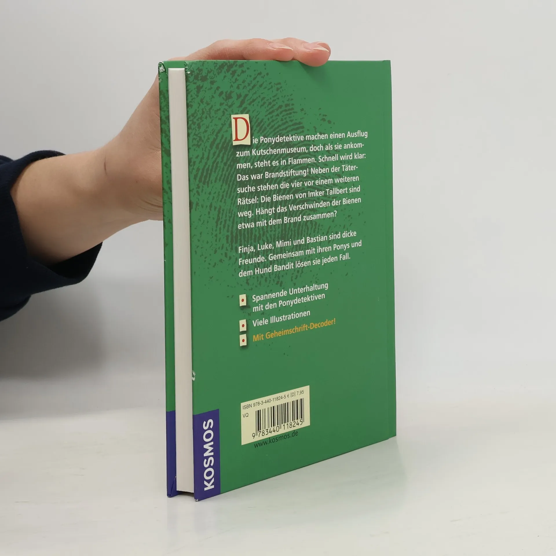 Finja, Luke, Mimi und Bastian sind enge Freunde und Ponydetektive. Bei einem Ausflug zum Kutschenmuseum entdecken sie, dass es brennt. Sie müssen den Brandstifter finden und herausfinden, ob das Verschwinden der Bienen von Imker Tallbert damit zusammenhängt. Spannende Unterhaltung mit Illustrationen und Decoder!